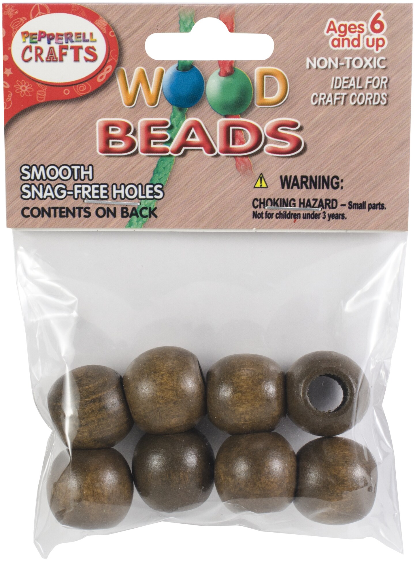 Pepperell Round Wood Beads 20mm 8/Pkg