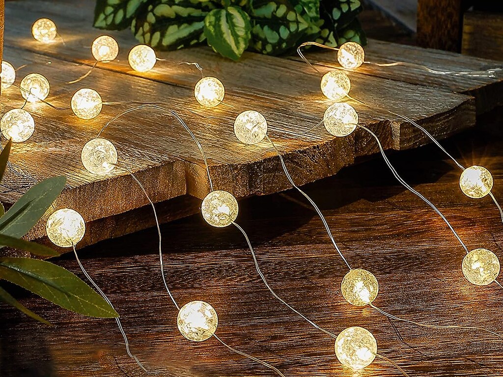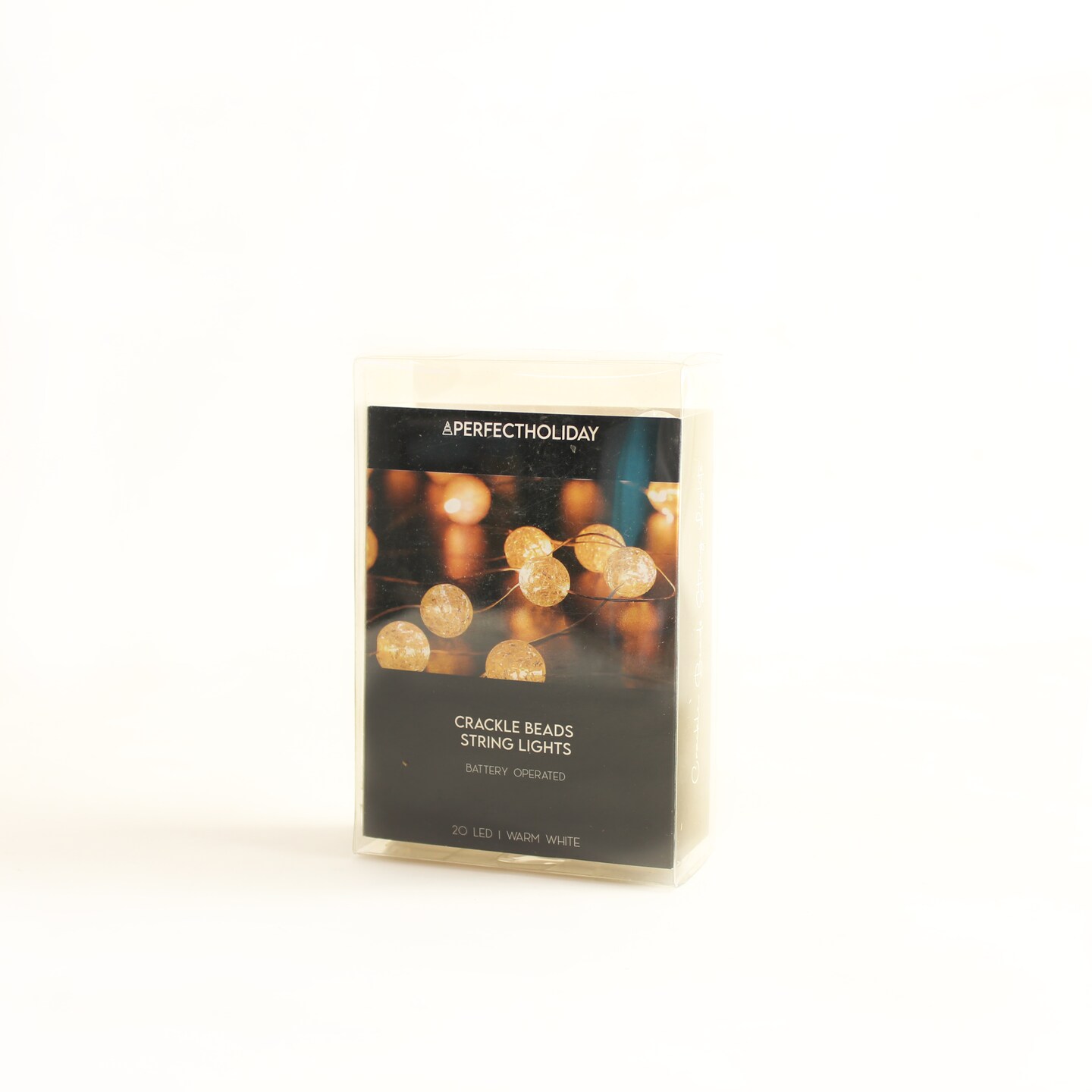 Perfect Holiday 20 LED CRACKLE BEADS STRING LIGHTS, INDOOR,WARM WHITE