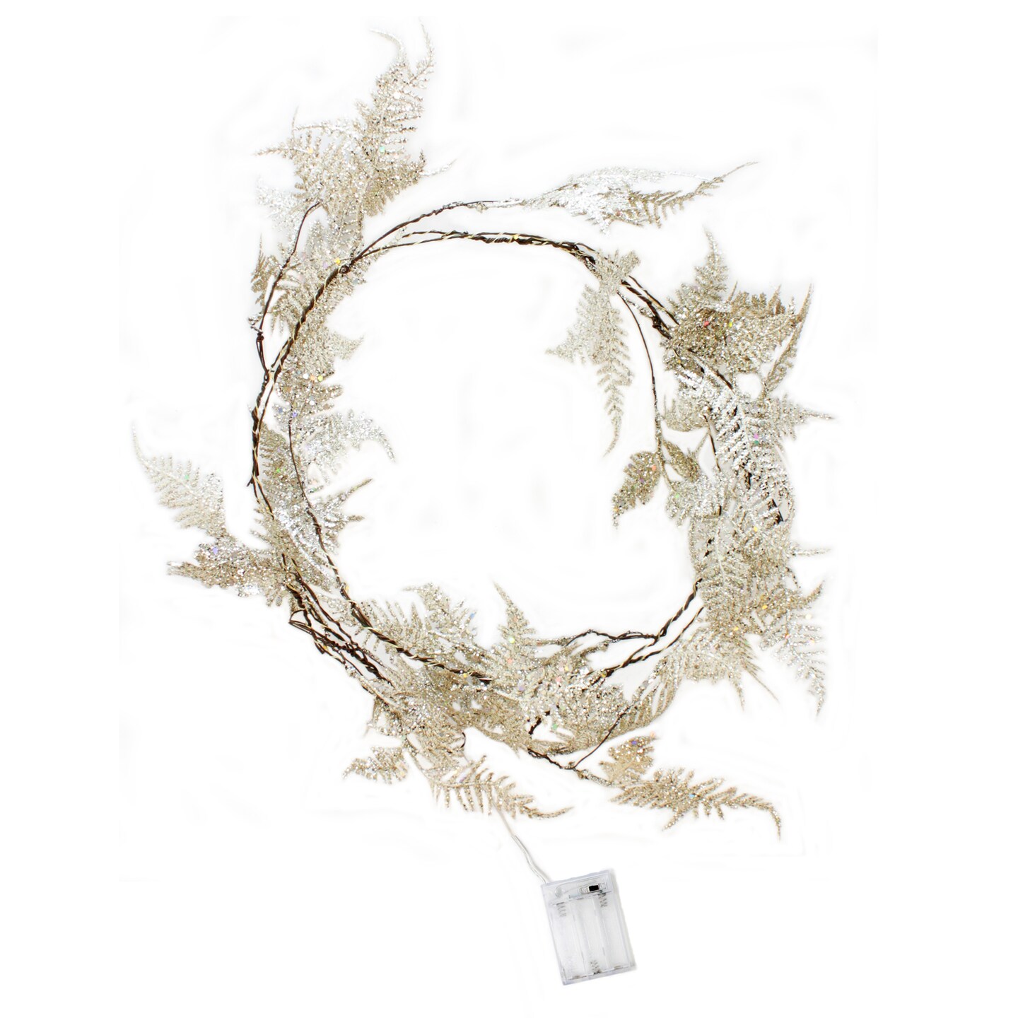 Perfect Holiday 20 LED Gold Iridescent Glitter Fern Fairy Light - Battery Operated