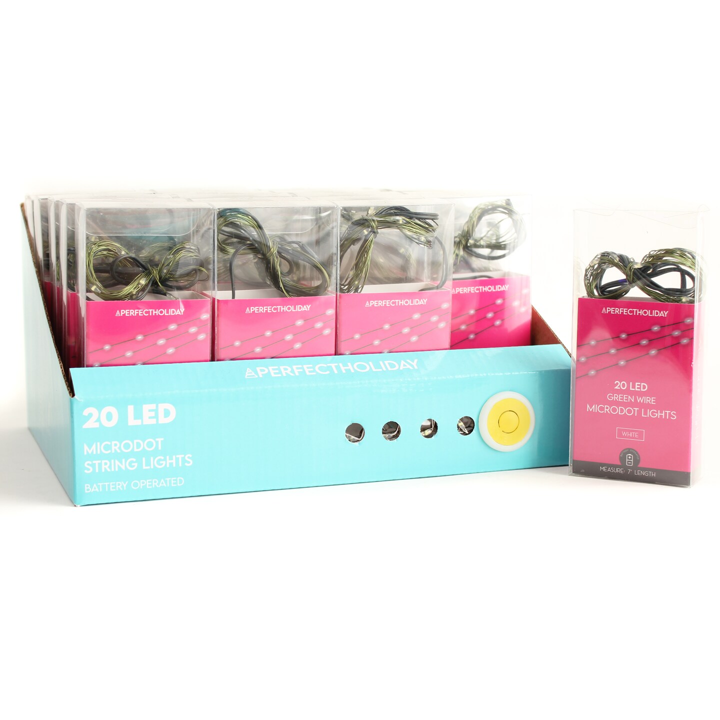 Perfect Holiday 20 LED MULTICOLOR MICRODOT LIGHTS , 7FT(2M)LEGNTH, W/3AA INDOOR BATTERY BOX, GREEN WIRE