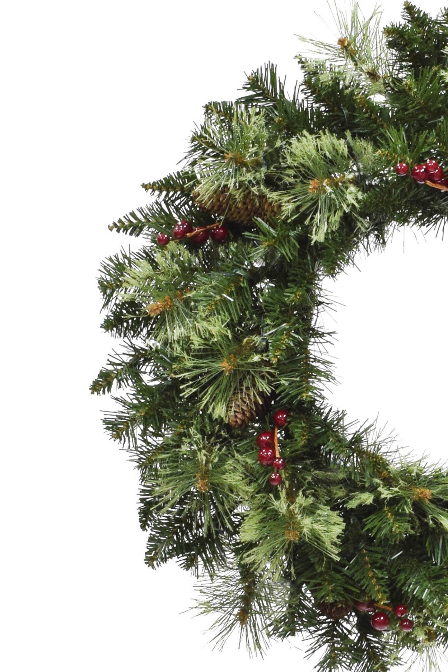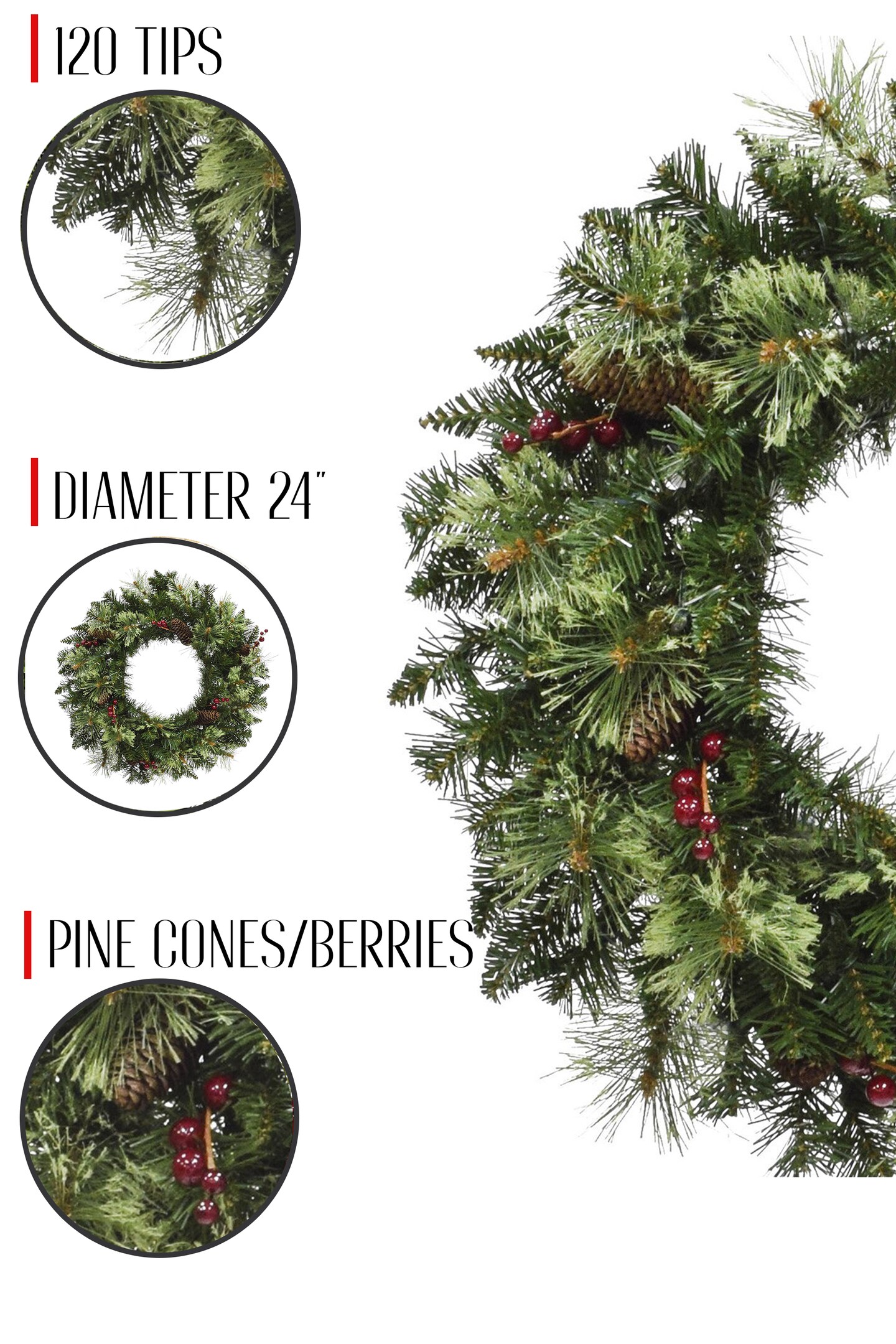 Perfect Holiday 24" Jasper Mixed Pine Wreath With Pine Cones And Red Berry Clusters