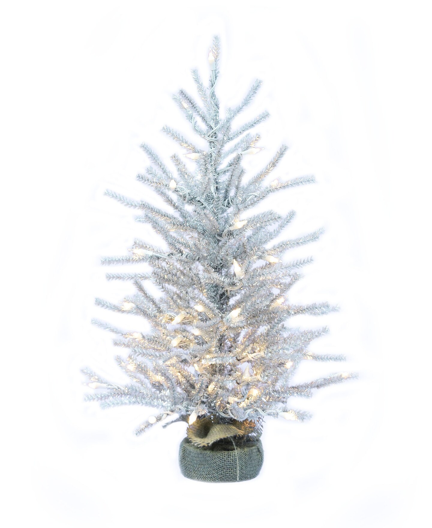 Perfect Holiday 24" Pre-Lit Silver Christmas Tree With Burlap Base