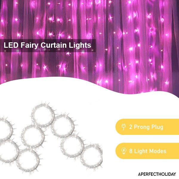 Perfect Holiday 300 LED Curtain String Lights Plug In - 8 Light Modes