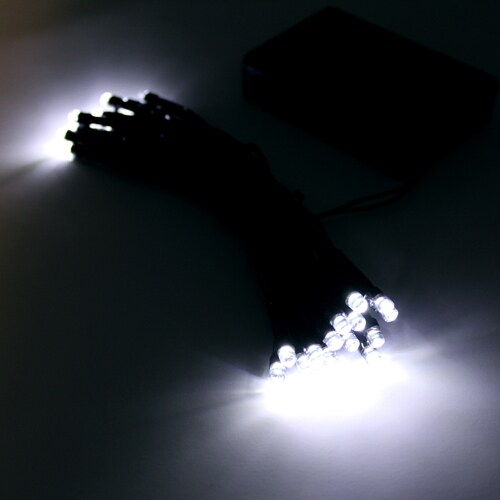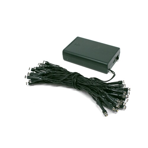 Perfect Holiday 40 LED String Light Battery - Green Cable Timer - White