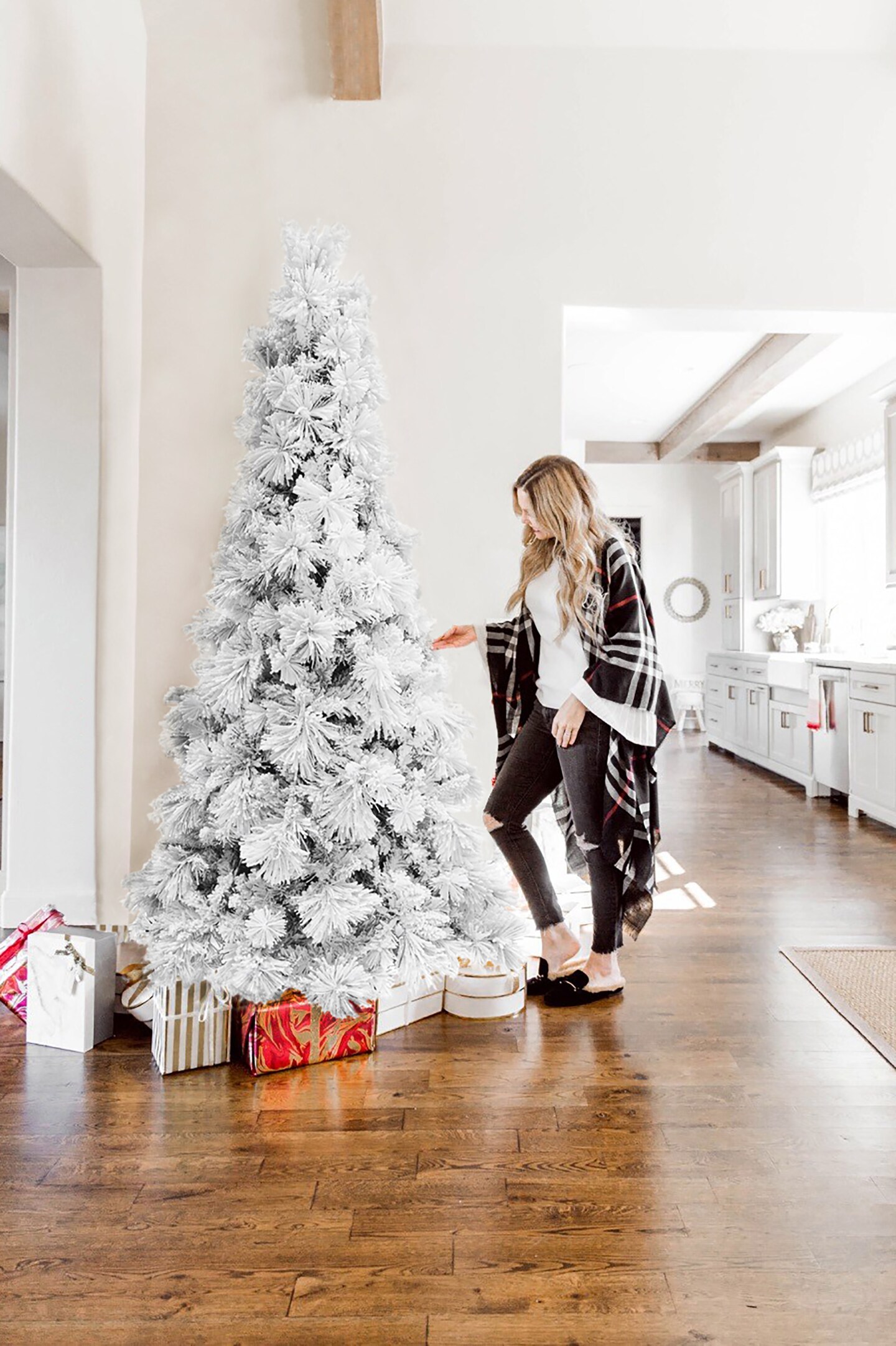 Perfect Holiday 7.5' Slim Snow Flocked Atka Christmas Tree