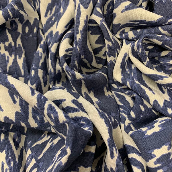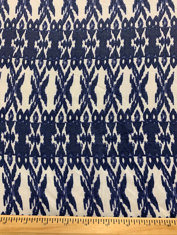 Periwinkle and White Stripe Print Rayon Challis Fabric By the Yard