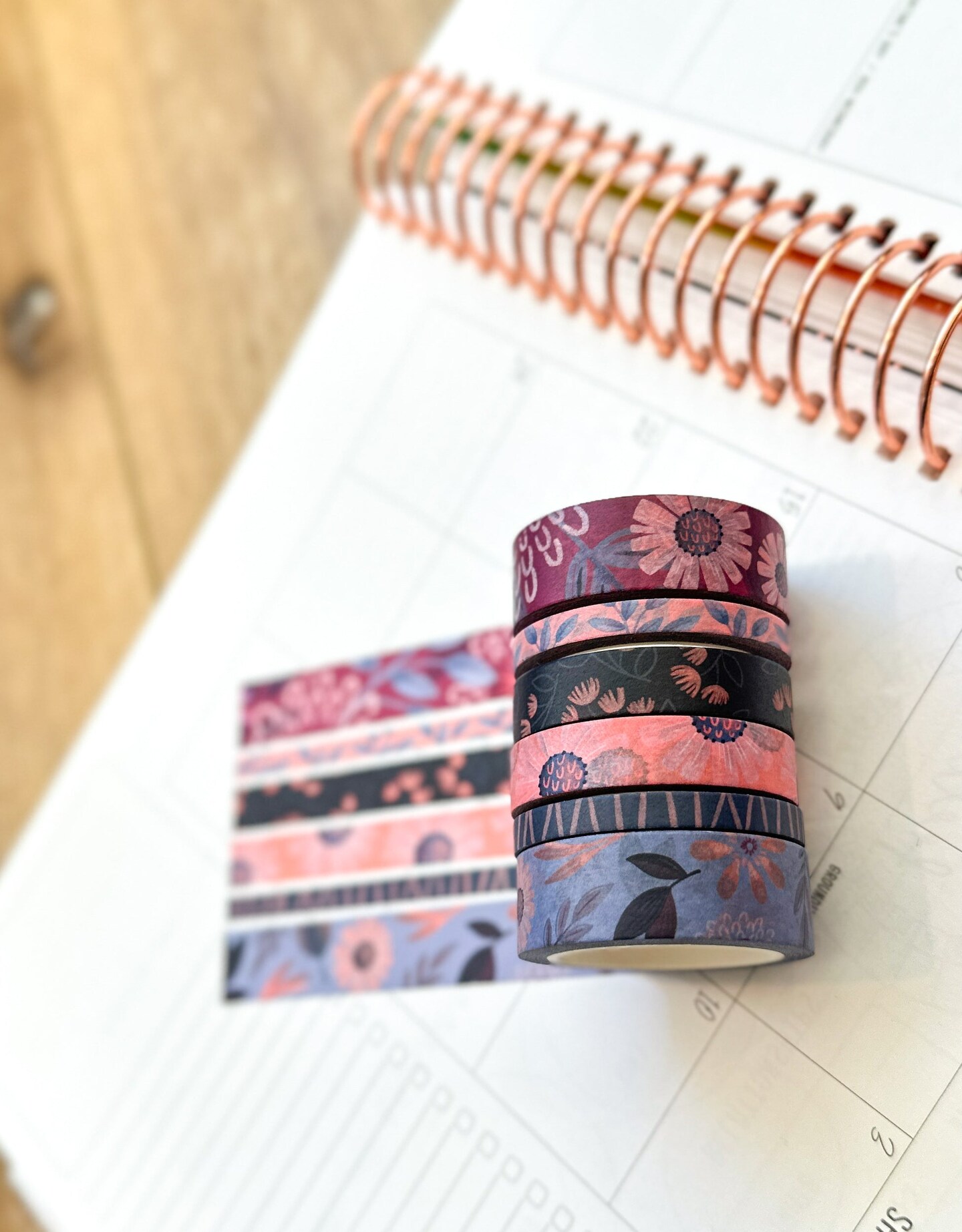 Periwinkle Pink Navy Coral Floral Modern Flowers Washi Tape Set February 2024 - W101