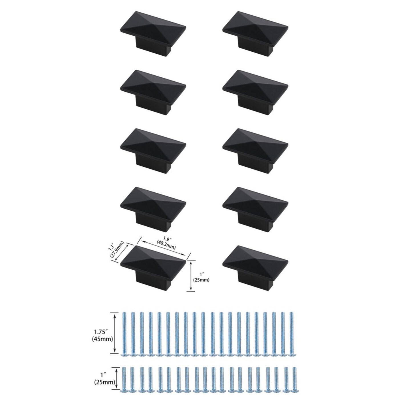 Perry 2" Matte Black Rectangle Knob Multipack (Set of 10)