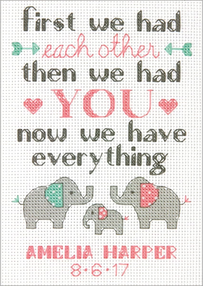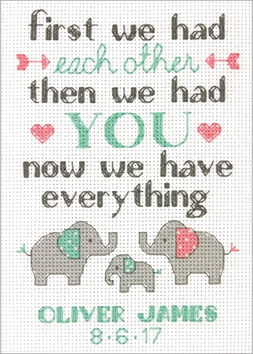 Personalized Baby Elephant Counted Cross Stitch Kit – 14CT Ivory Aida, 7×5 Inch Birth Record DIY Embroidery for Nursery Keepsake