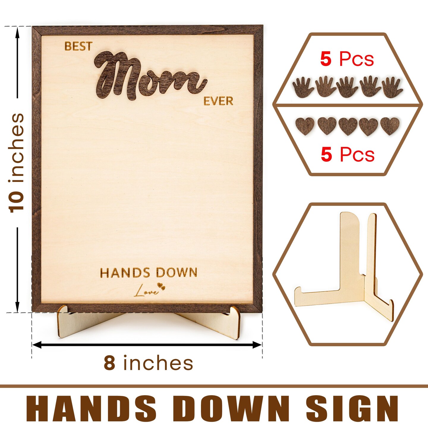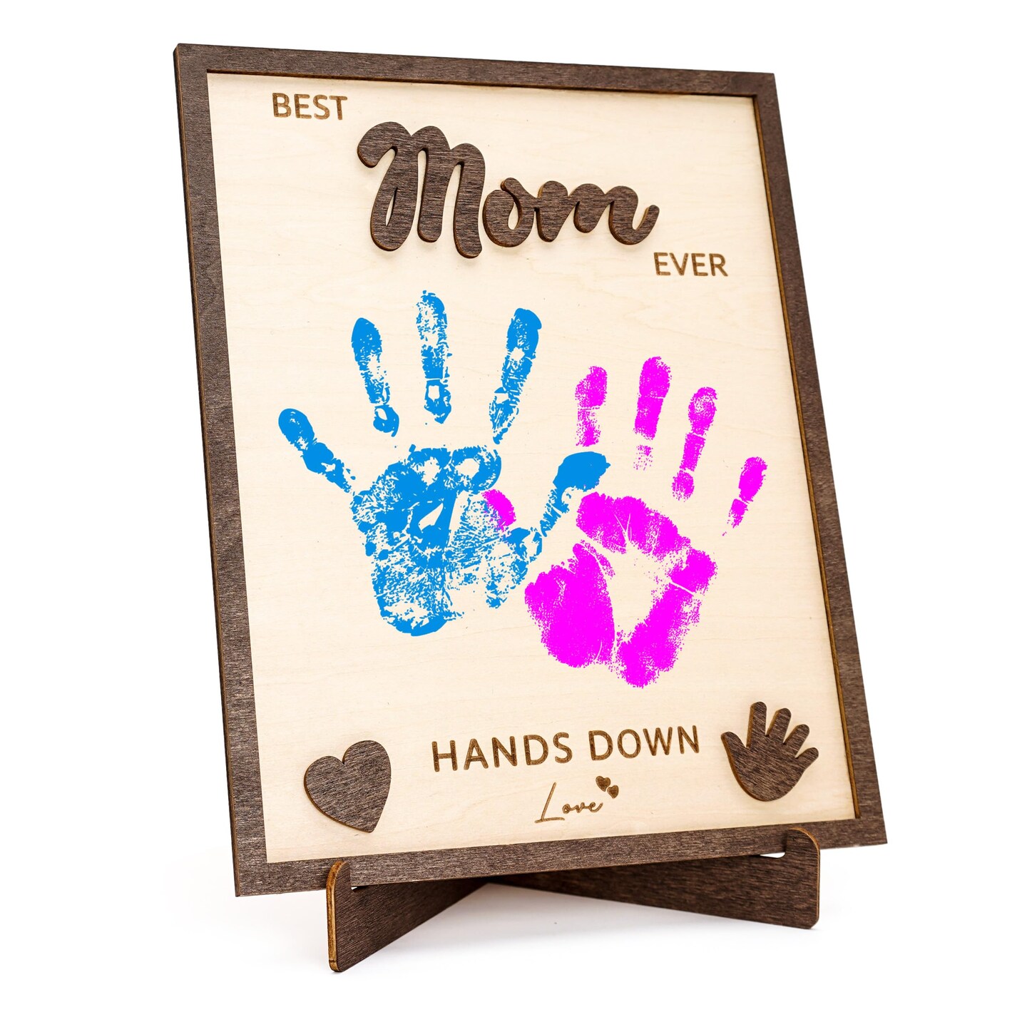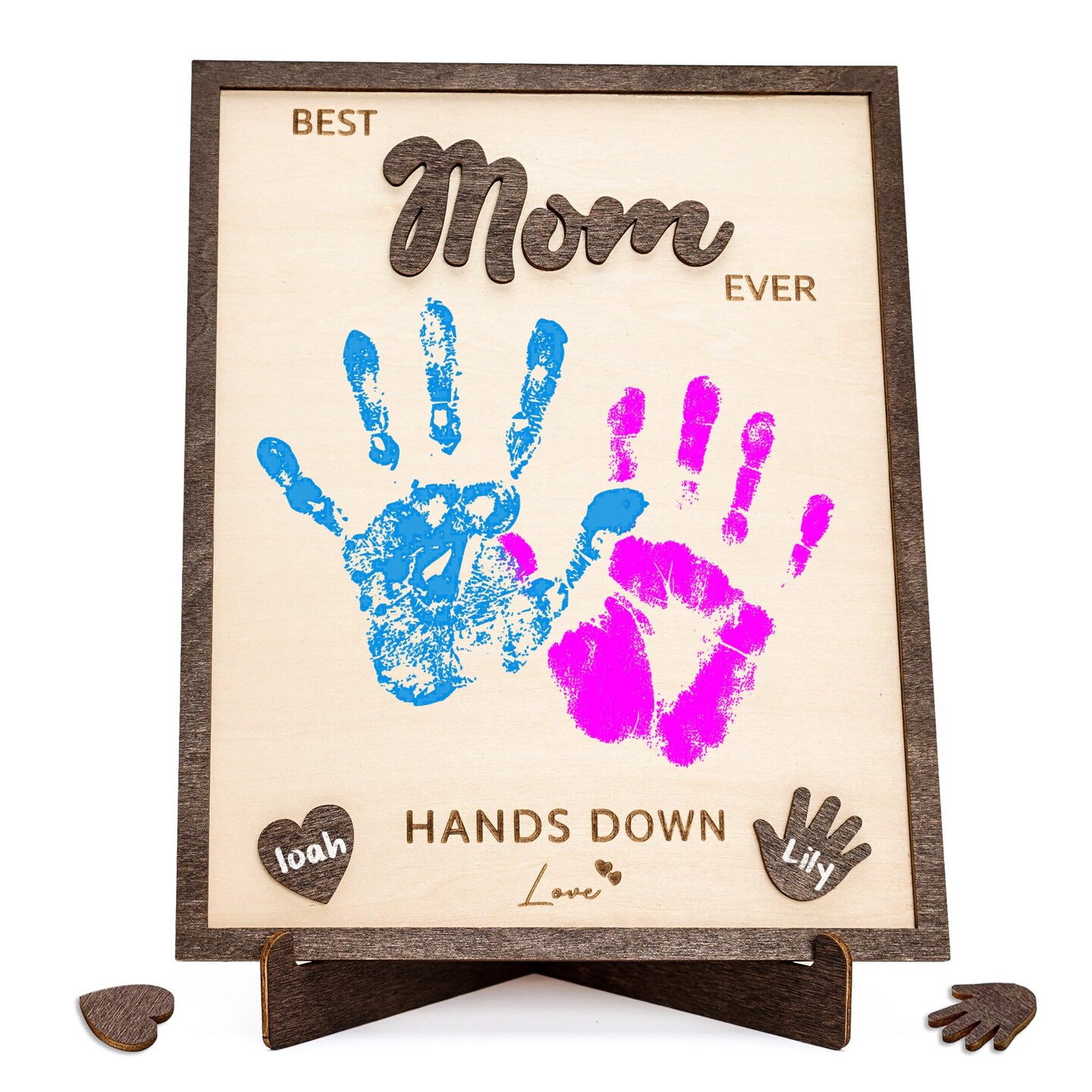 Personalized Best Mom Ever Gifts - Wooden Keepsake Sign with Kids Handprint Art, Custom Ink Name, DIY Craft Kit for Mother's Day, Handmade Family Decor, Unique Birthday Gift Idea for Mom