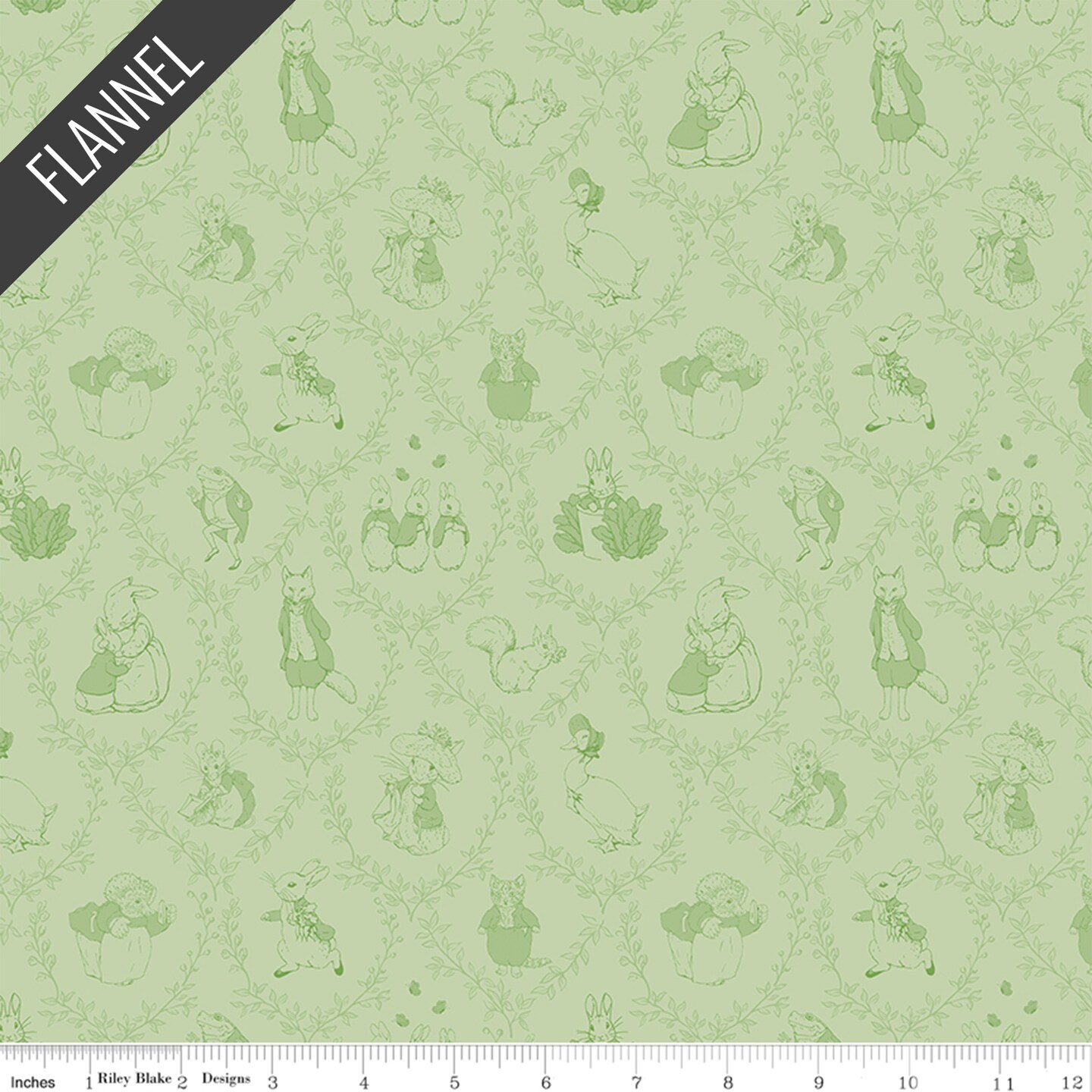 Peter Rabbit and Friends Toile Flannel in Fern (f16790-fern) | Designer Flannel | Riley Blake Designs | Riley Blake