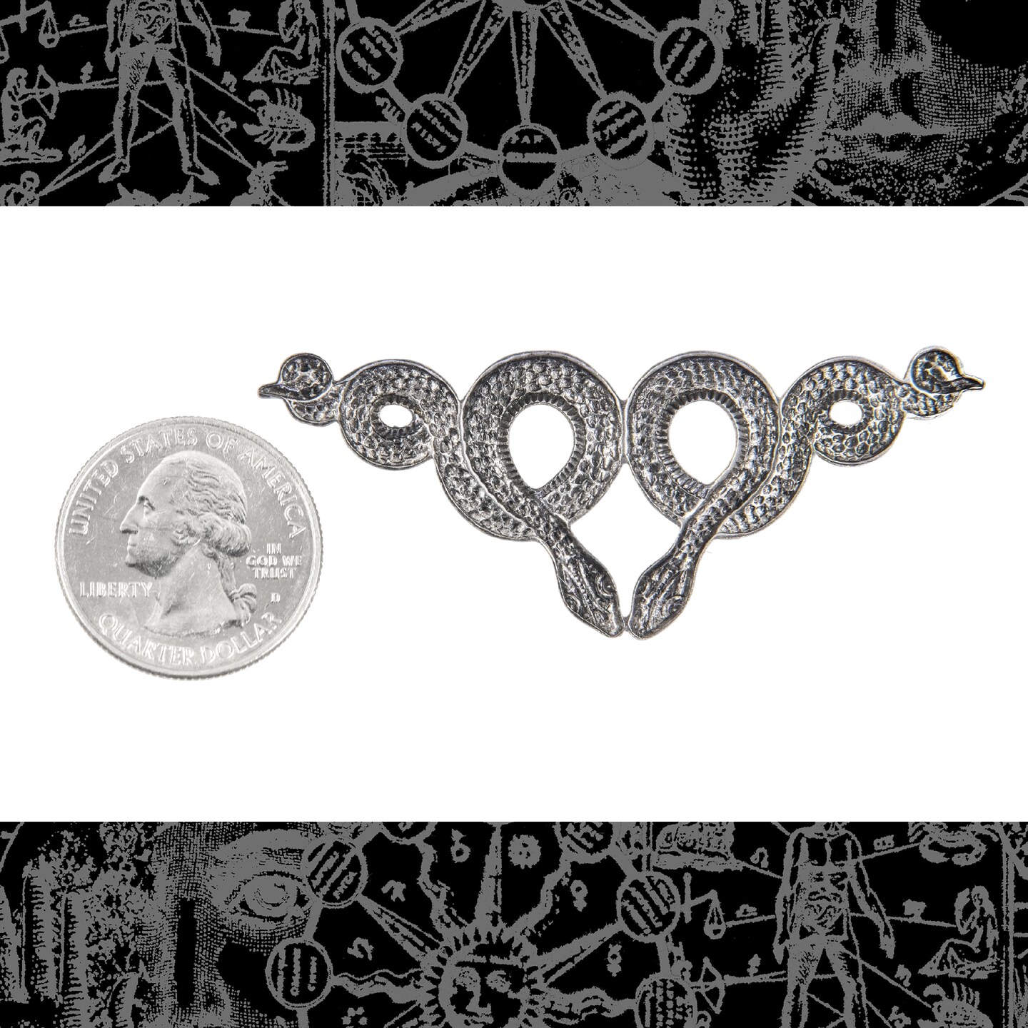 Pewter Plated Brass Double Snake Centerpiece Pendant Stamping - P-P24
