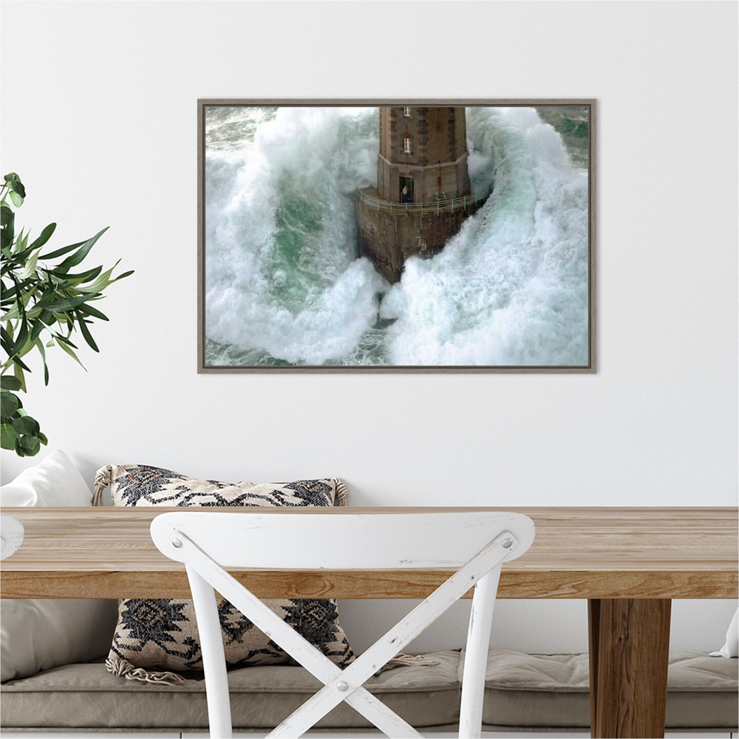 Phares dans la Tempete La Jument by Jean Guichard Canvas Wall Art Print Framed