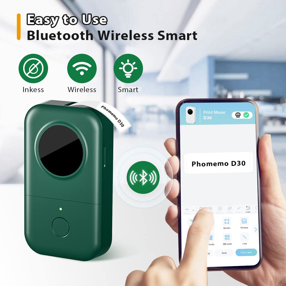 Phomemo D30 Label Maker Machine, Portable Bluetooth Mini Label Printer, Smart Phone Handheld Thermal Sticker Small Labeler Multiple Templates Font Icon Inkless for Home Office