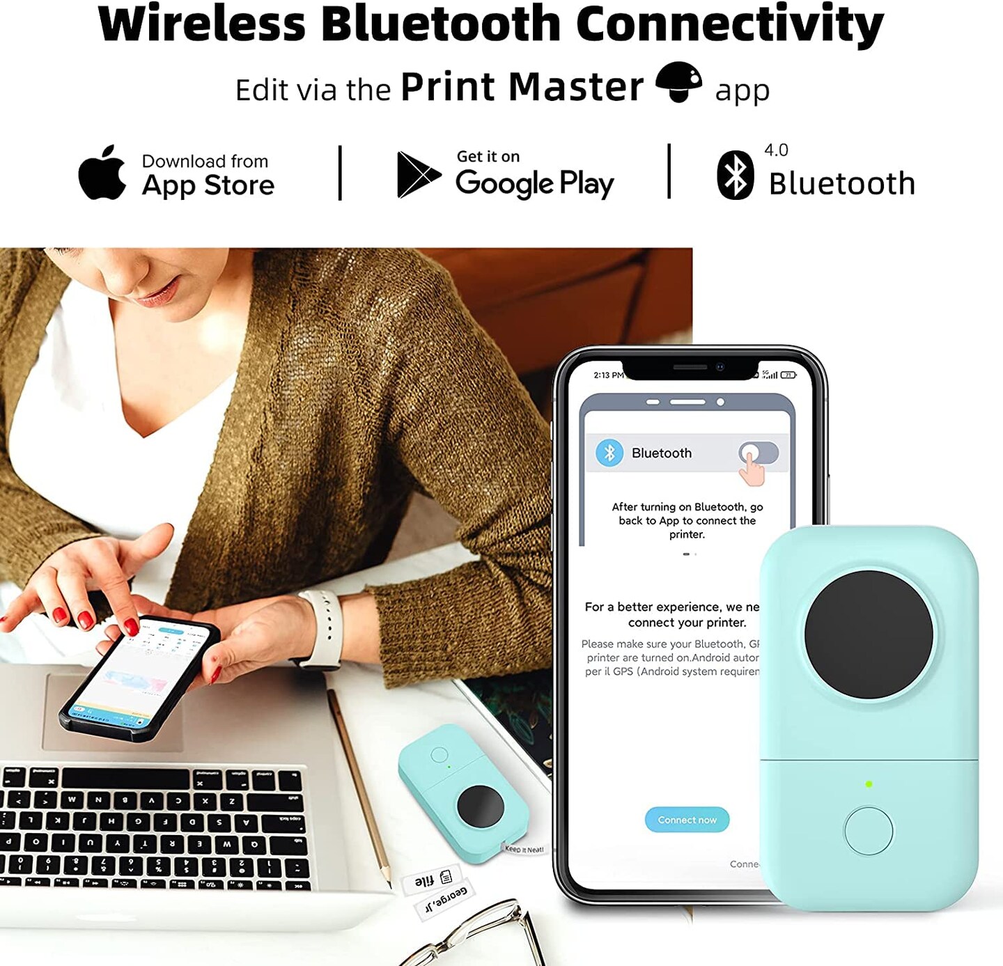 Phomemo Label Maker Machine with Tape D30, Small Office Home Edit Label Maker, Mini Bluetooth Thermal Label Printer, Smart Mobile Pocket Handy Sticker Labeler Printer, Compatible with iOS/Android