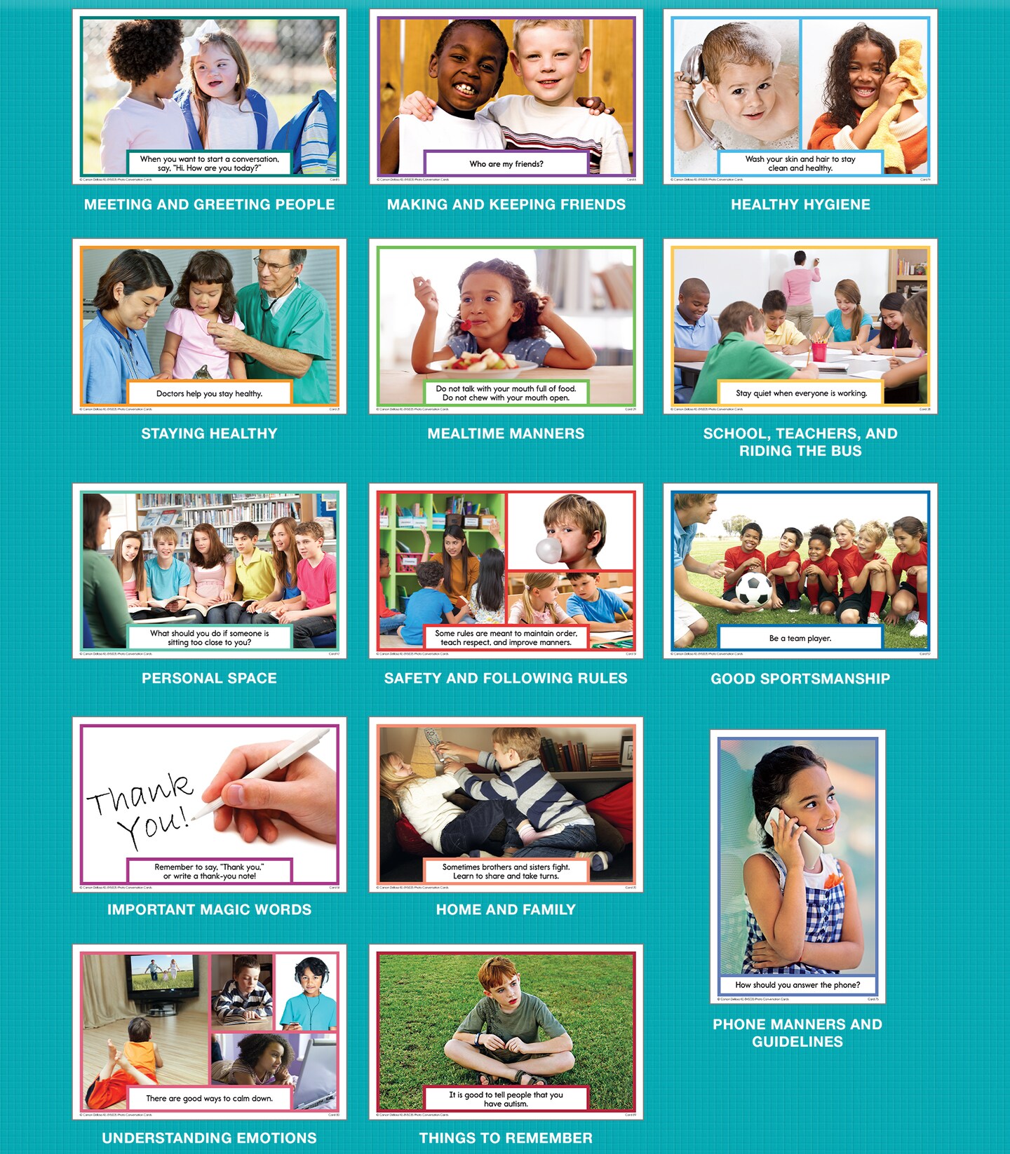 Photo Conversation Cards—Social Emotional Flash Cards For Children With Autism and Aspergers, Behavioral and Communication Skills Practice, Educational Games for Kindergarten+ (90 pc)