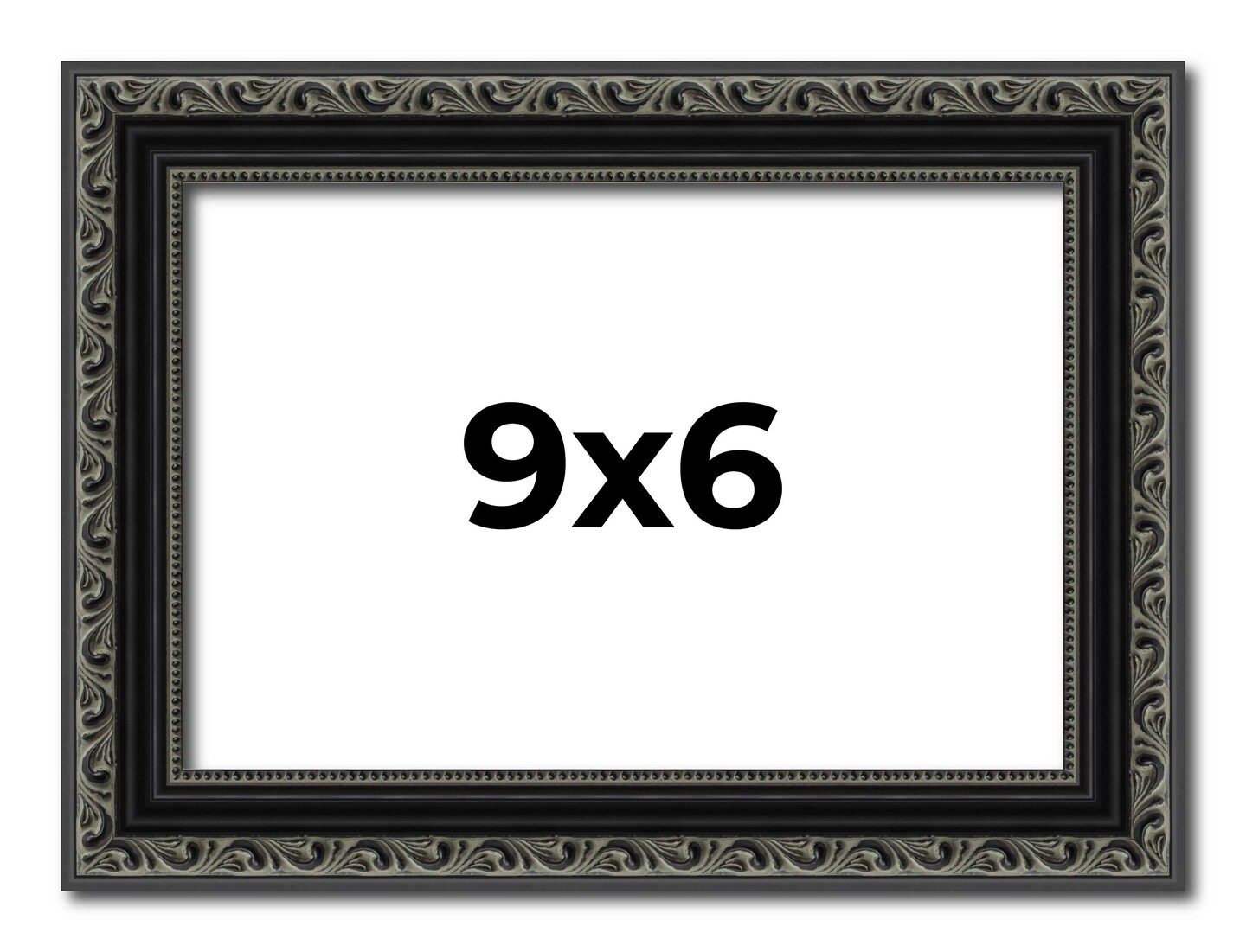 Photo Size Antique Black Picture Frame - UV Acrylic, Foam Board Backing, Hanging Hardware