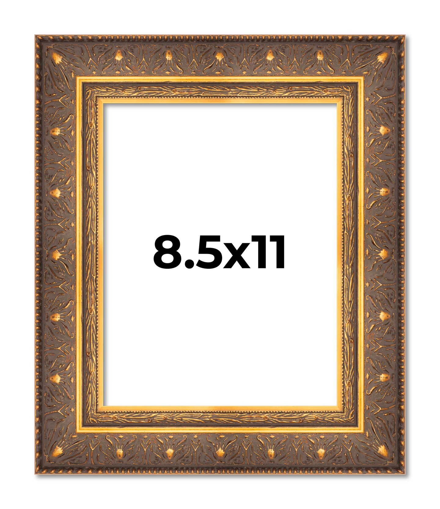 Photo Size Museum Gold Picture Frame - UV Acrylic, Foam Board Backing, Hanging Hardware