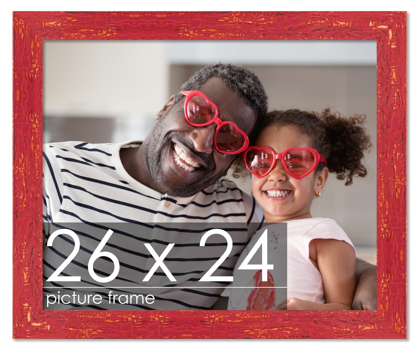 Photo Size Shabby Chic Red Picture Frame - UV Acrylic, Foam Board Backing, Hanging Hardware