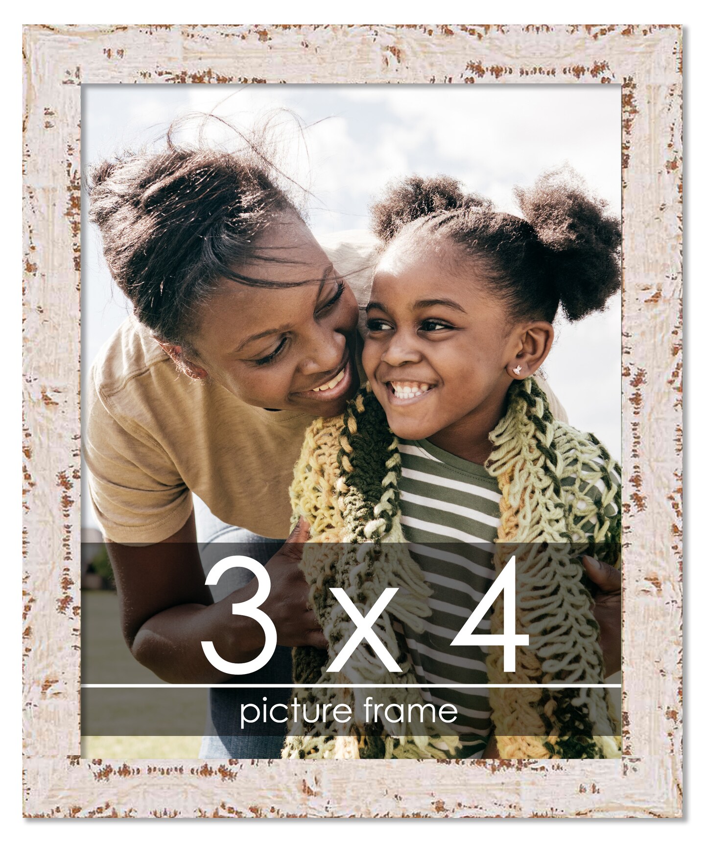 Photo Size Shabby Chic White Picture Frame - UV Acrylic, Foam Board Backing, Hanging Hardware