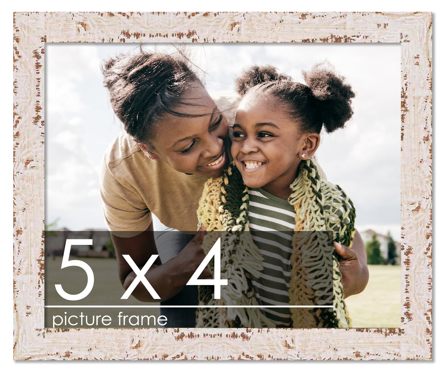 Photo Size Shabby Chic White Picture Frame - UV Acrylic, Foam Board Backing, Hanging Hardware