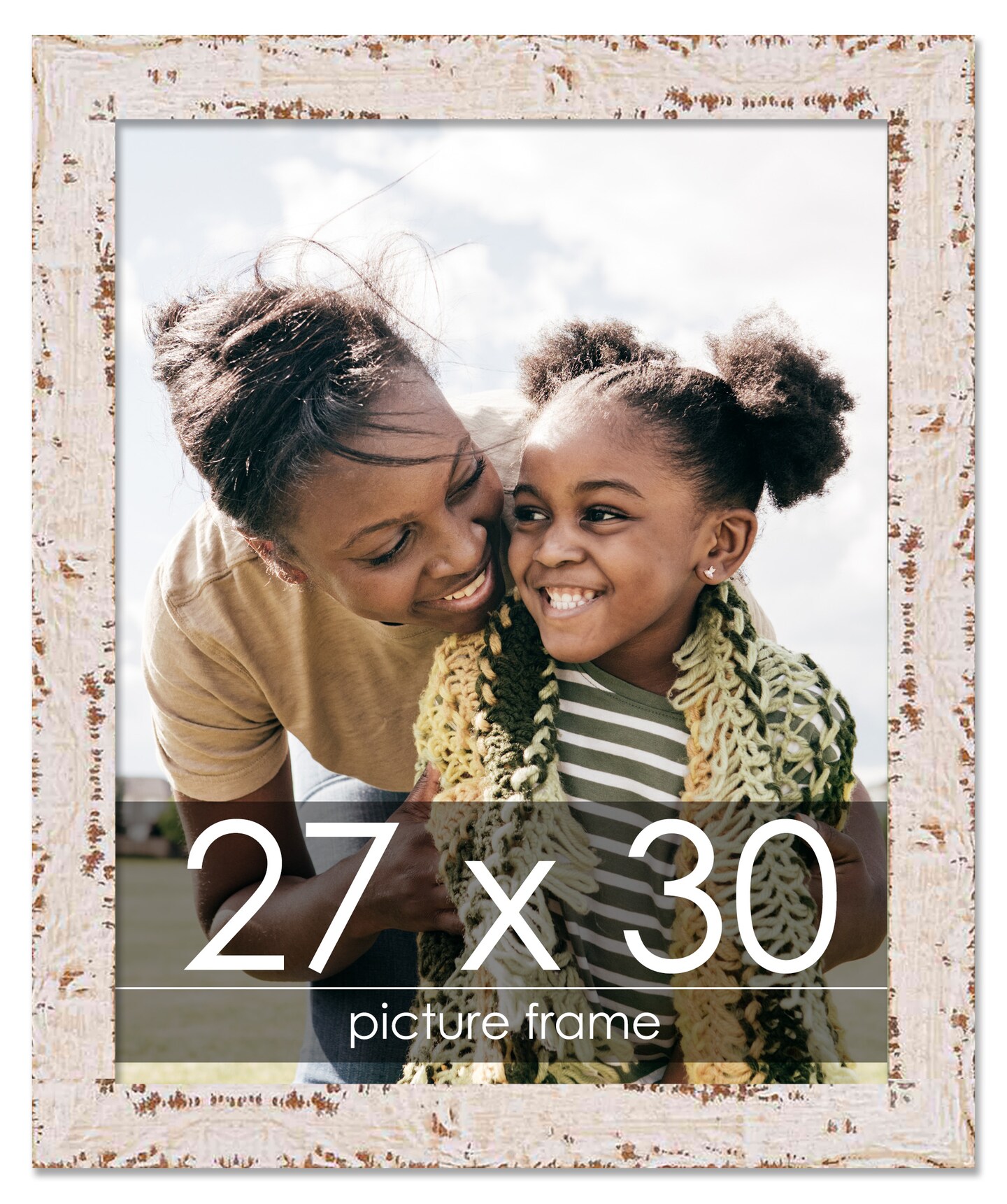 Photo Size Shabby Chic White Picture Frame - UV Acrylic, Foam Board Backing, Hanging Hardware
