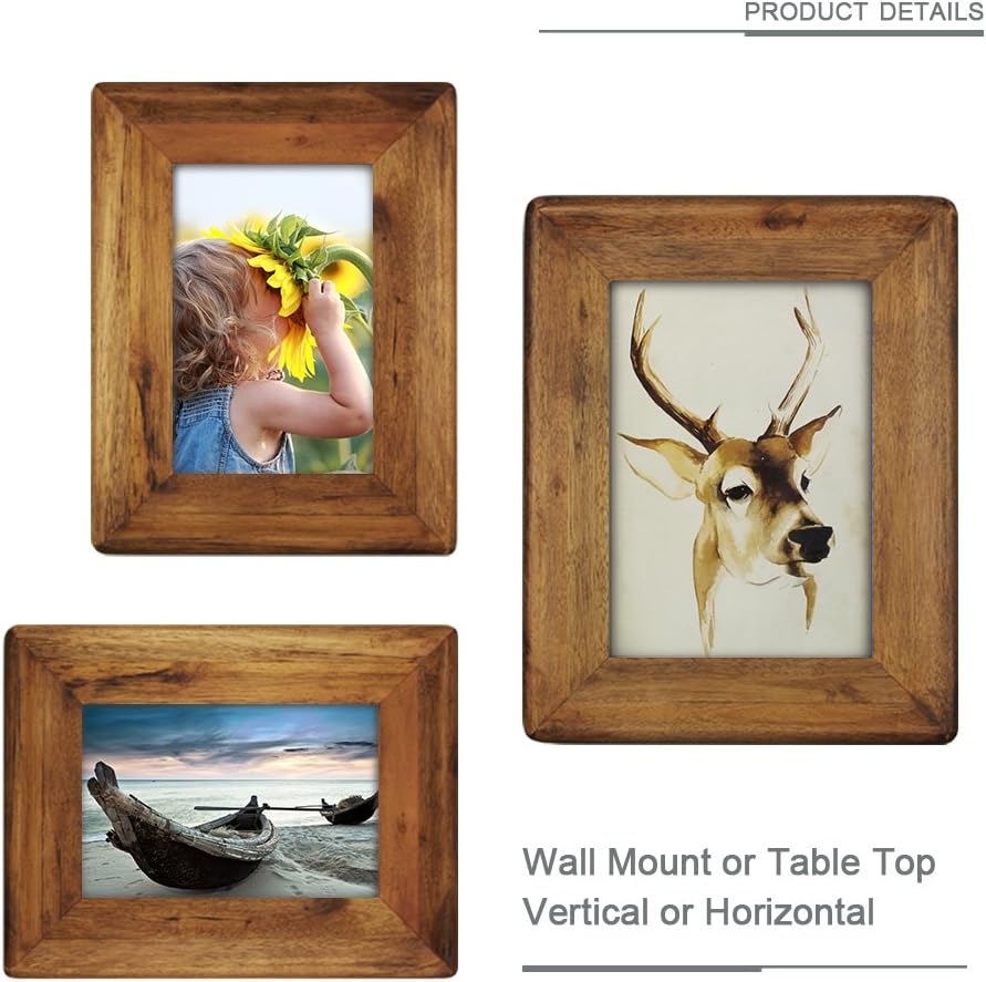 Picture Frame 5x7 Inch,Rustic Wood Photo Frames with Real Glass