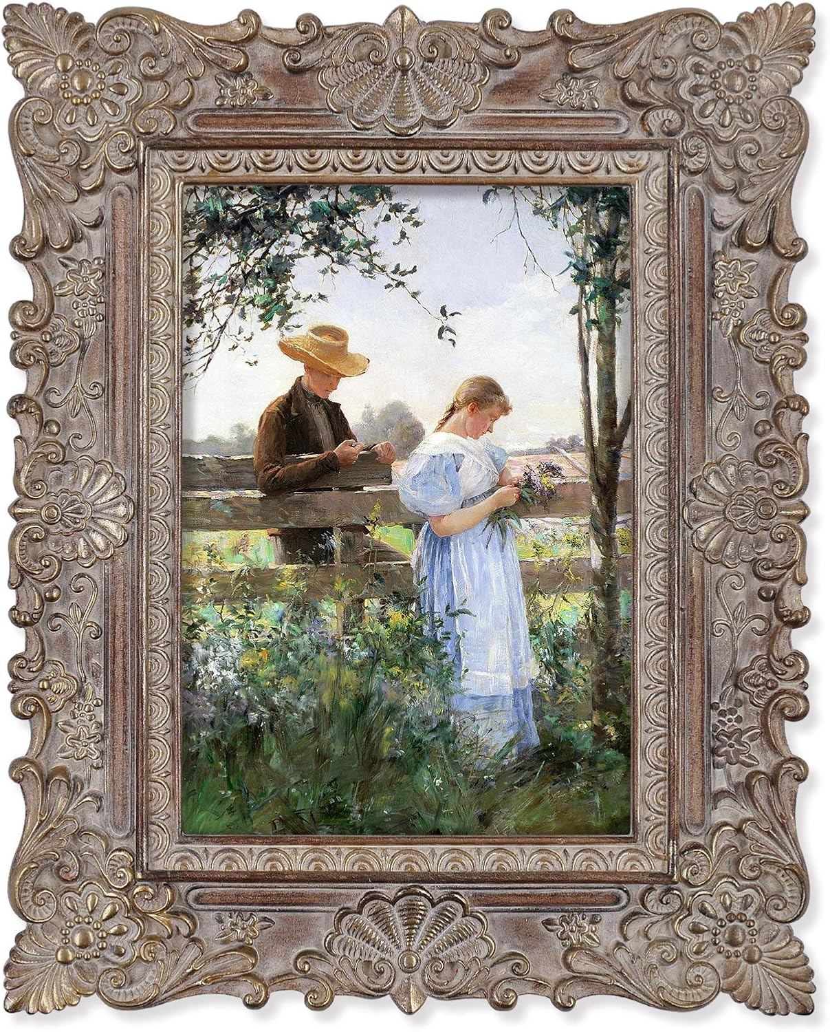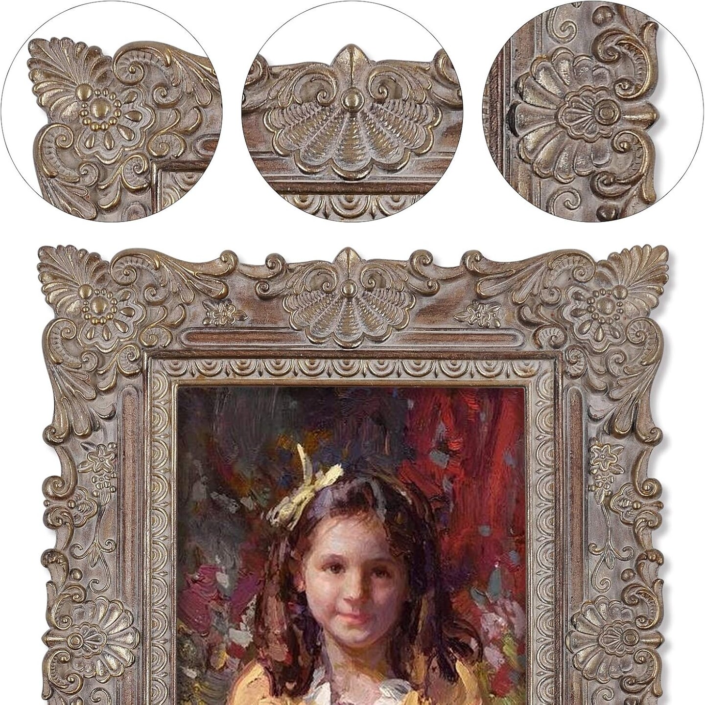 Picture Frames 5x7 Antique Style Photo Frame with Glass Front(Walnut & Gold)10.2"L x 8.1"W