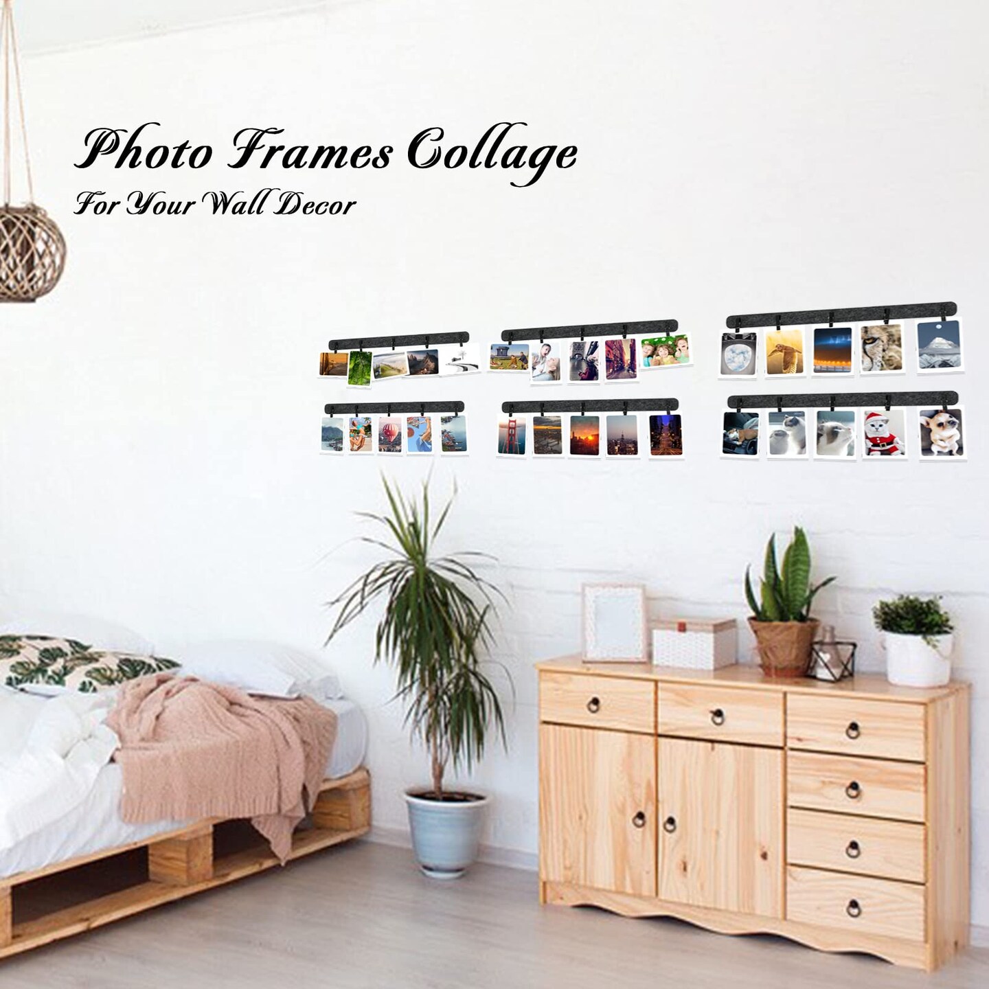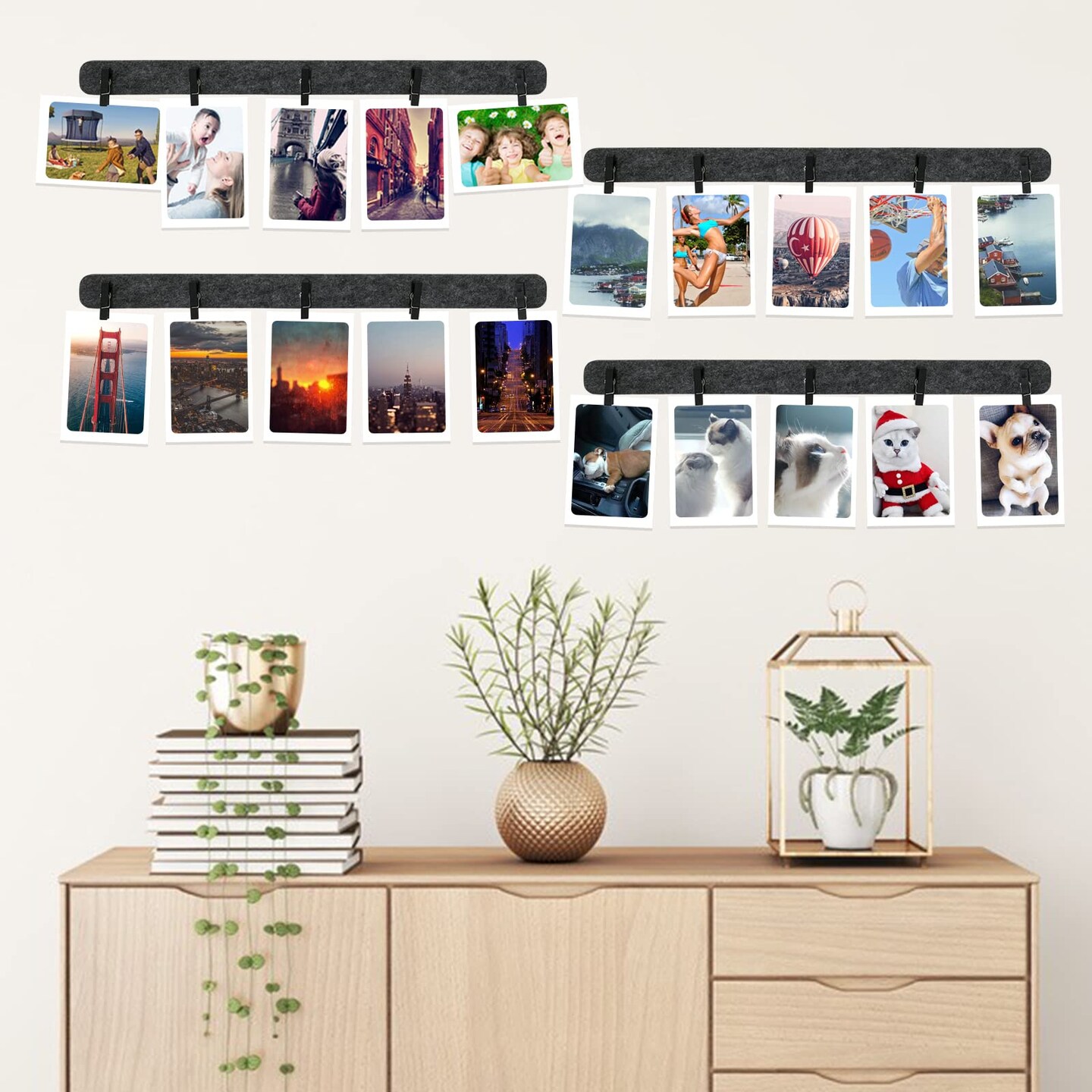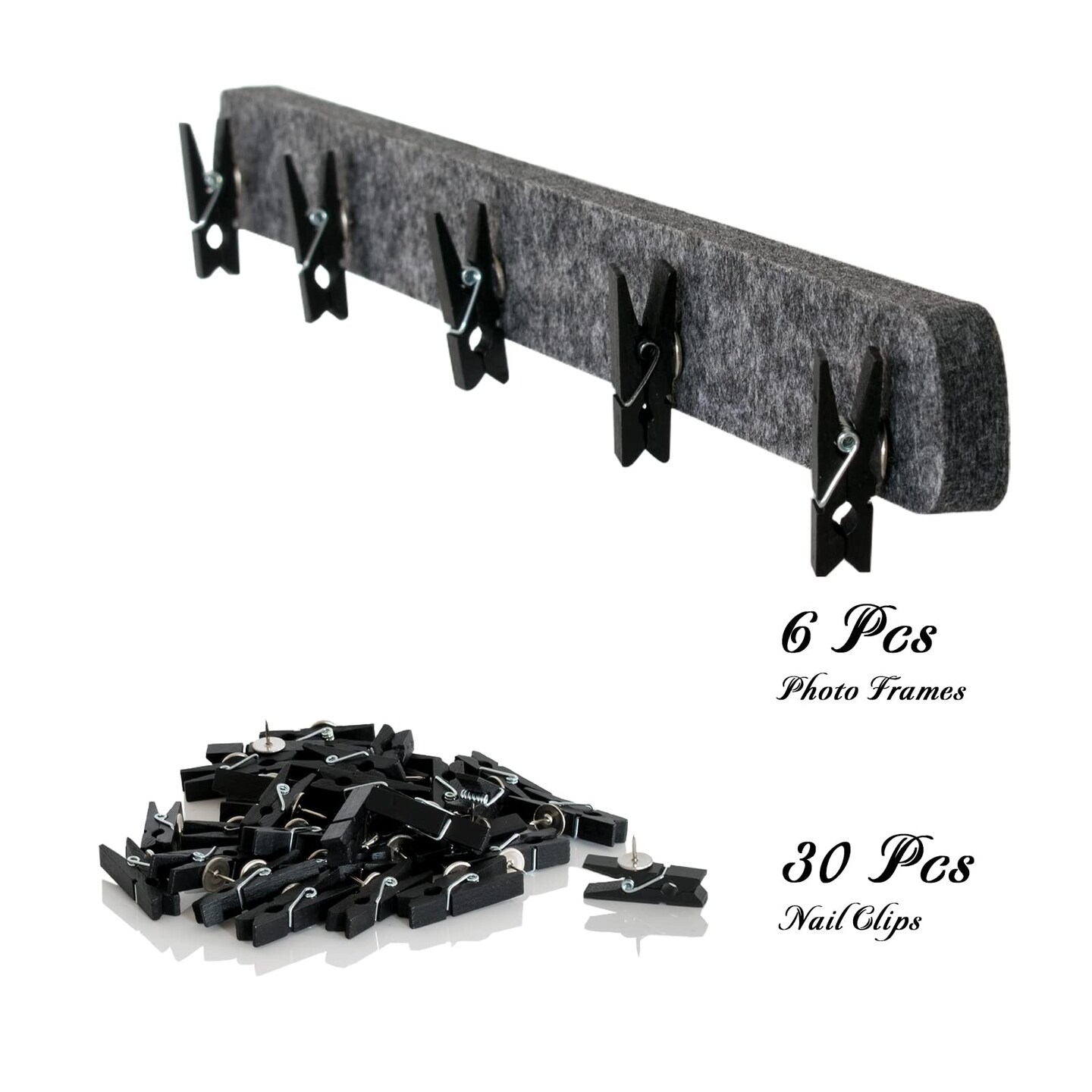 Picture Frames Collage Wall Decor, 6 Pcs Black Felt Lightweight Bulletin Board Strips, Photo Wall Collage Kit with 30 Clips for Photo Display, Notes, Schedules, Announcements
