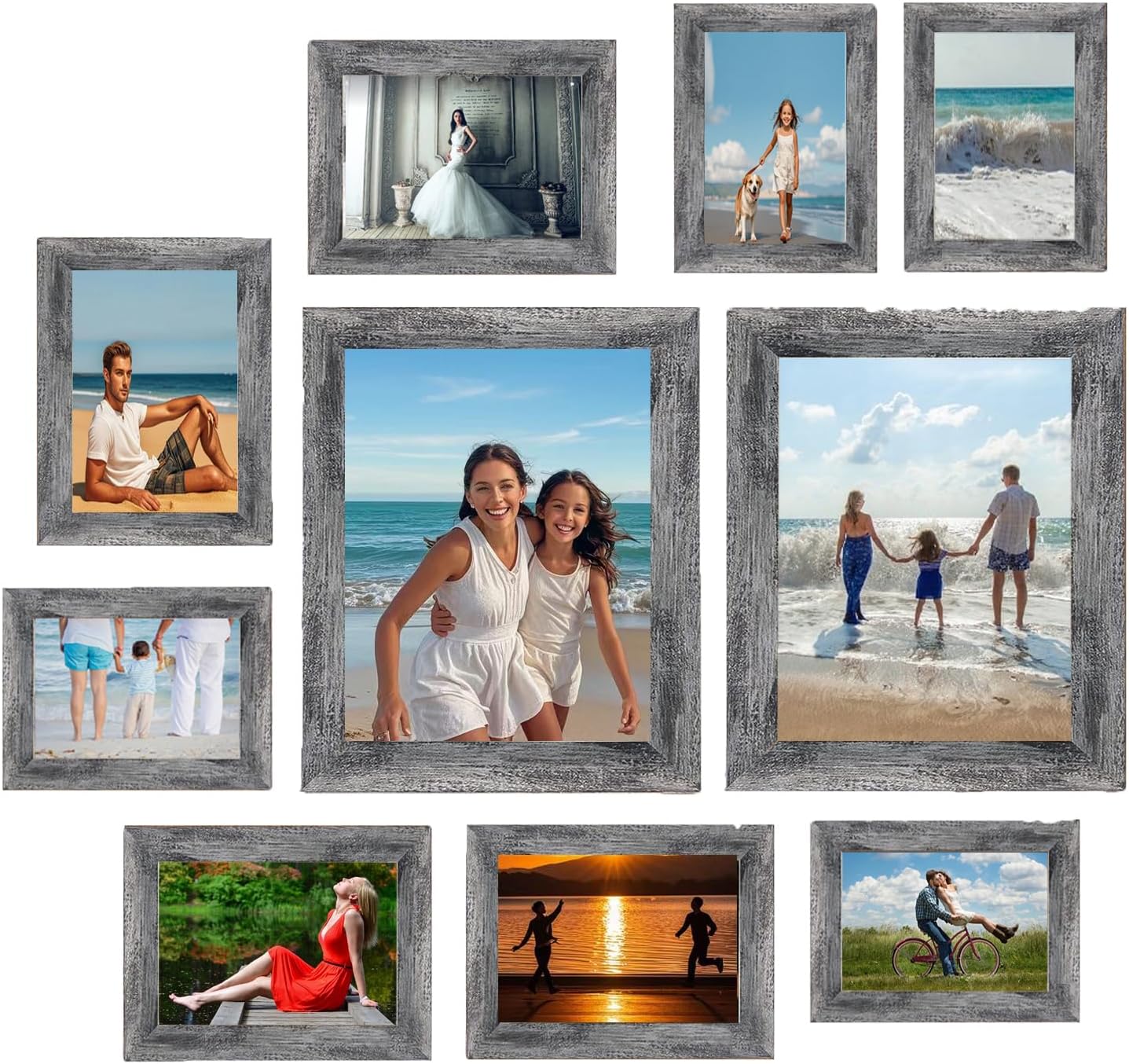 Picture Frames set with Two 11x14, Four 8x10, Four 5x7 Gallery Wall Frame Set,Collage Picture Frame,10Pack Farmhouse wood Photo Frames for living room Wall Gallery Decor or Desk,Rustic Black