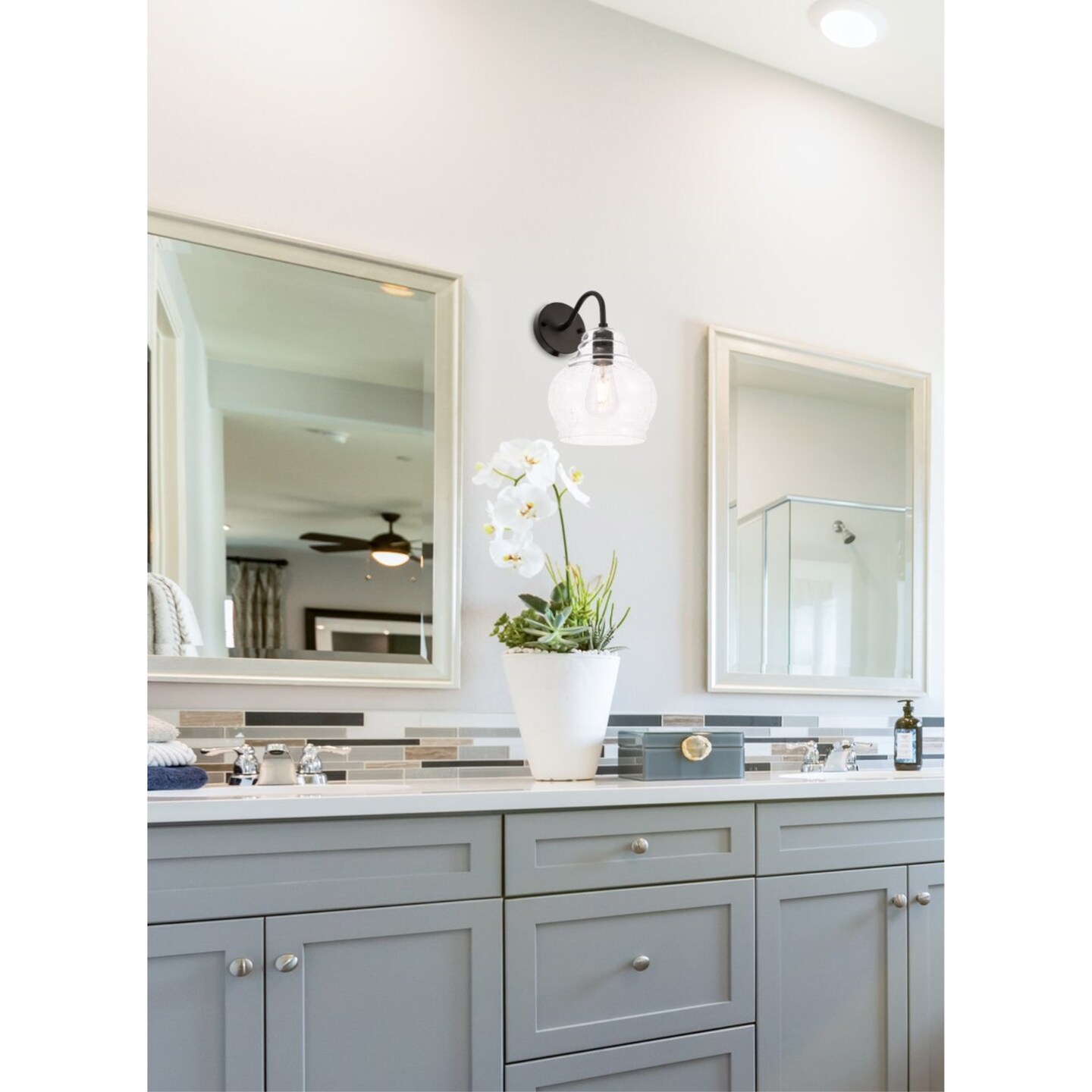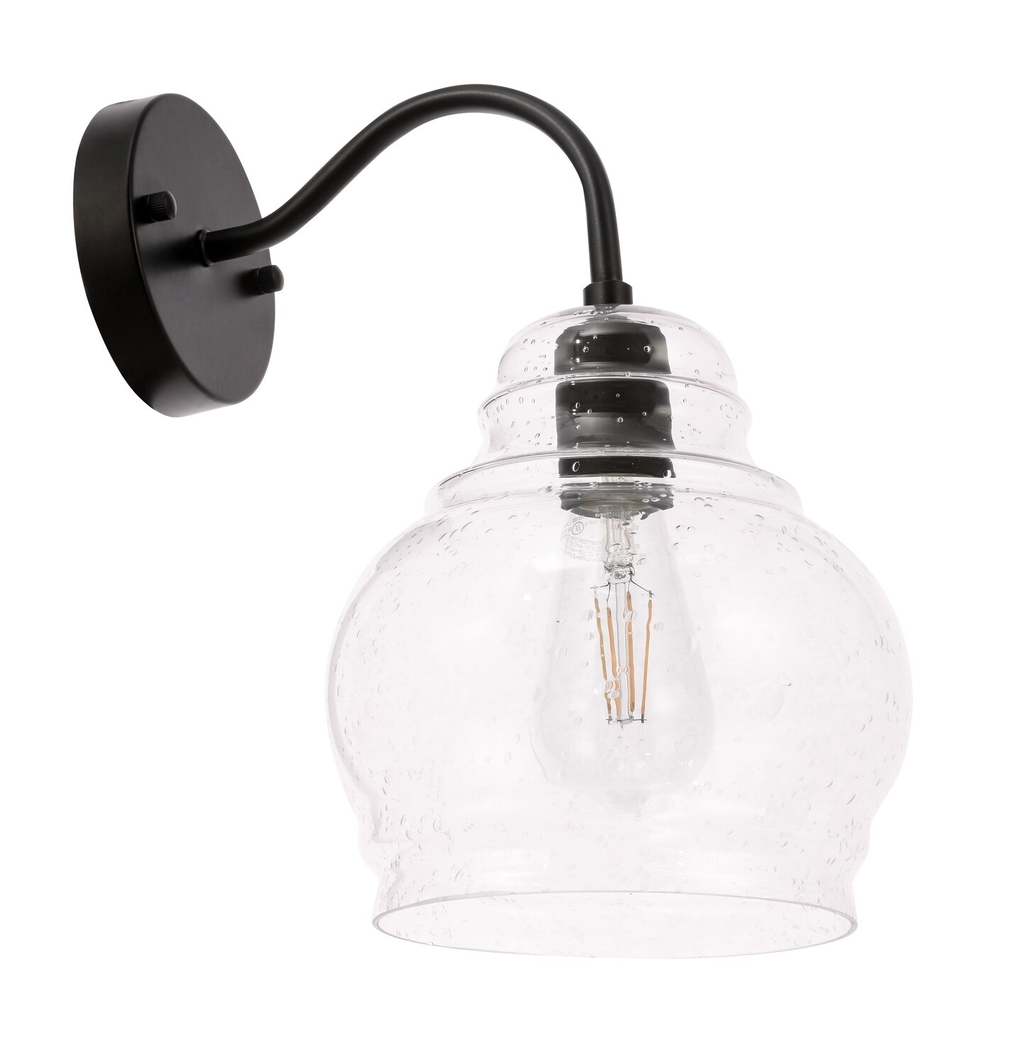 Pierce 1 light Black and Clear seeded glass wall sconce