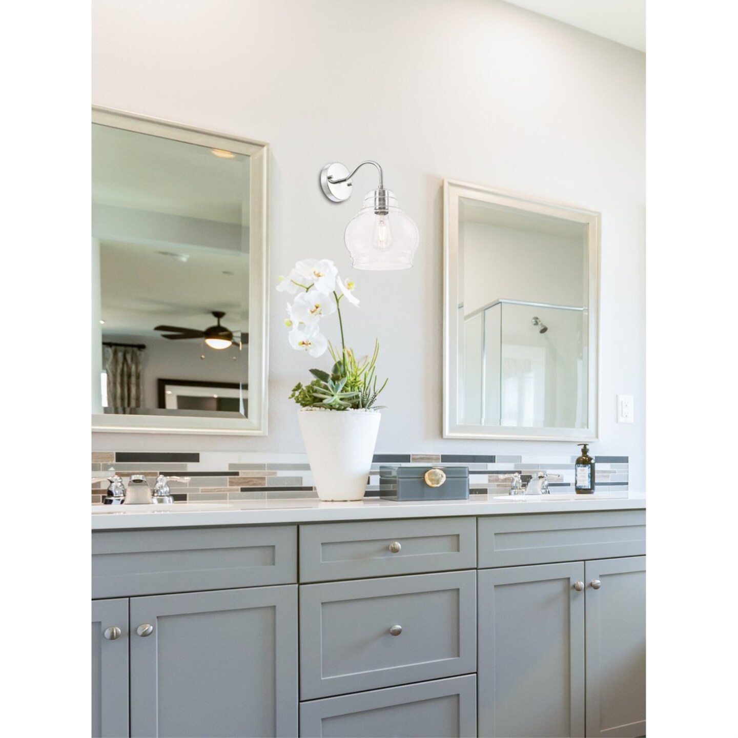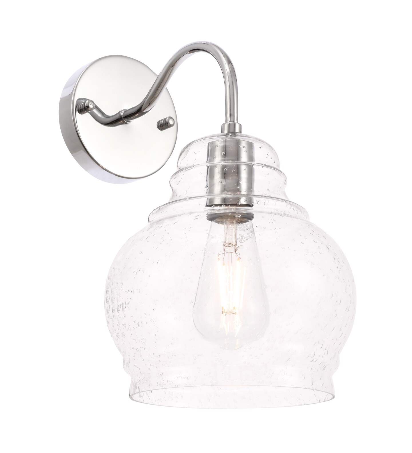 Pierce 1 light Chrome and Clear seeded glass wall sconce