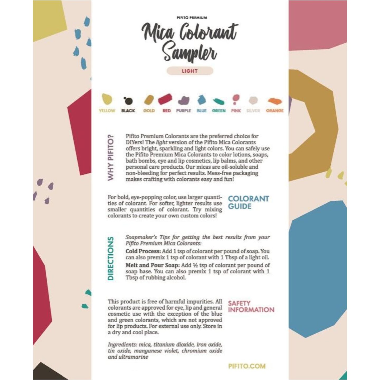 Pifito Mica Colorant Powder Light Sampler │ 10 Beautiful Color Dyes for Soap Making Supplies, Bath Bombs, Epoxy Resin (.25 oz ea)