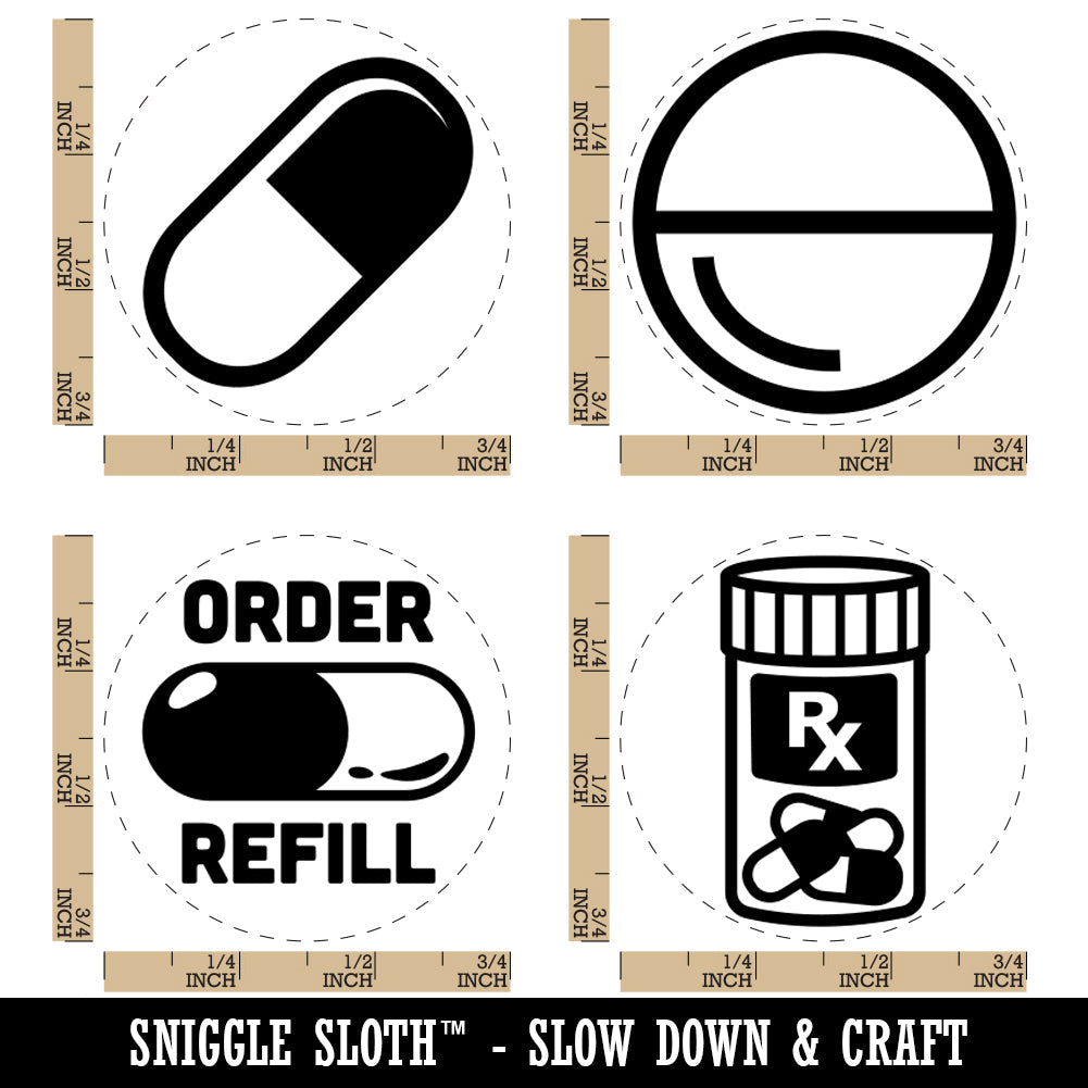 Pill Medicine Prescription Medication Reminder Symbols Rubber Stamp Set for Stamping Crafting Planners