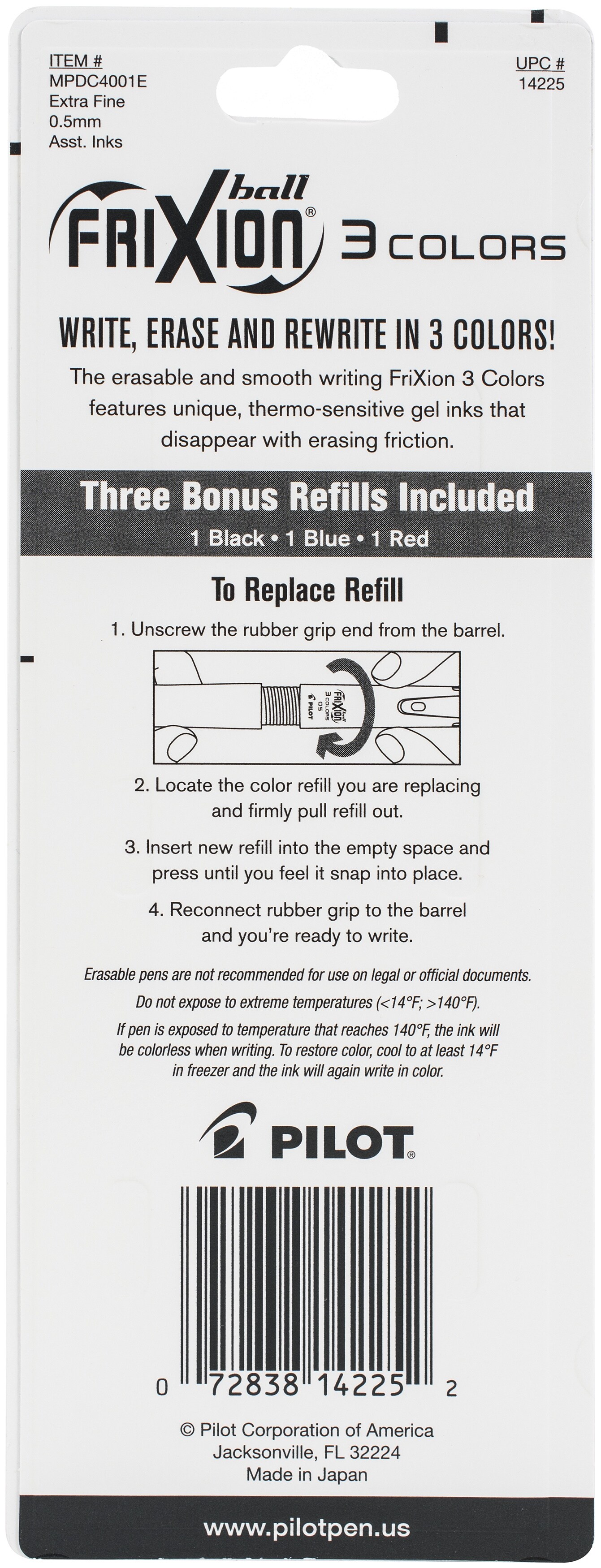 Pilot FriXion Ball 3 Color Extra Fine Point Erasable Pen-Red/Blue/Black