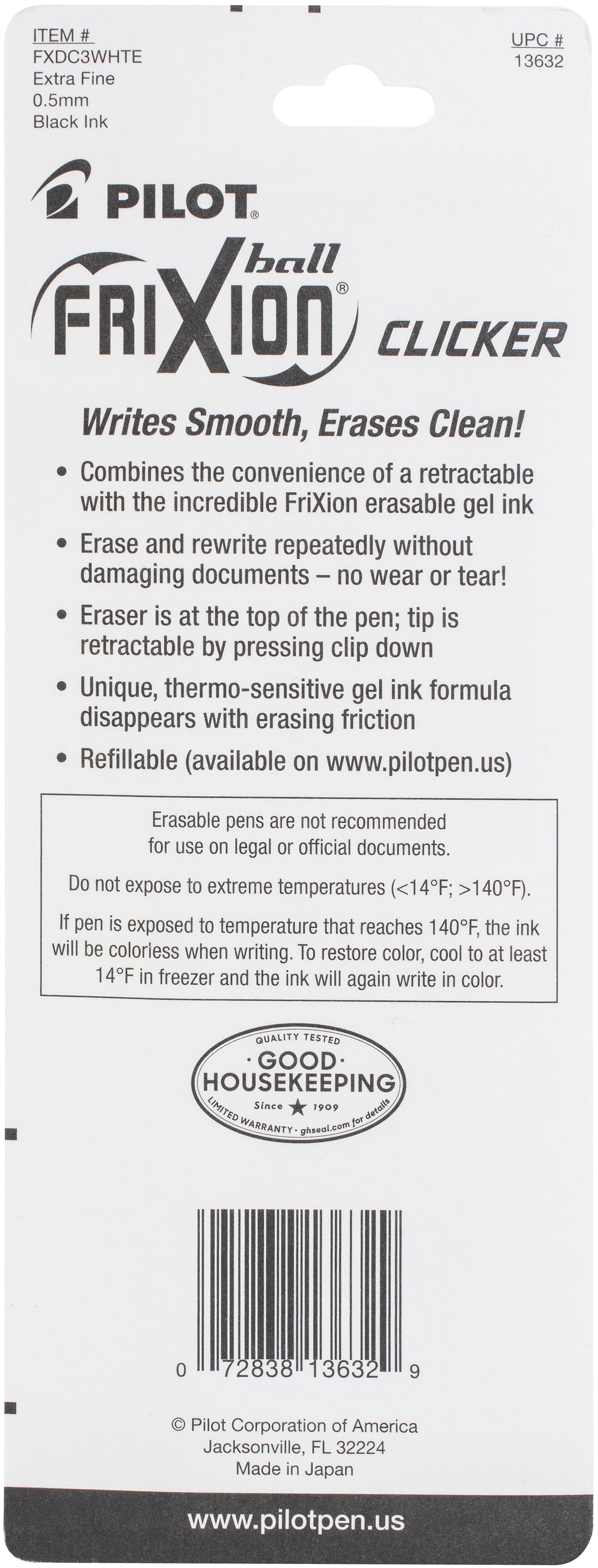 Pilot FriXion Clicker Extra Fine Point Erasable Pens 3/Pkg-Black