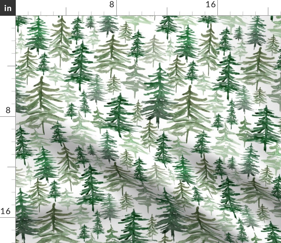 Pine Trees Forest Woodland Trees Winter Christmas Fall Xmas Evergreen Watercolor Woods Mountains Rustic Adventure Custom Printed Fabric by Spoonflower Various Fabrics by the Yard or Fat Quarter