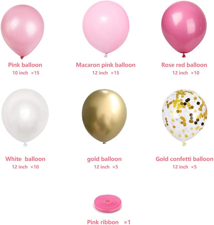Pink and Gold Confetti Balloons, 60pcs Hot Pink Balloons Macaron Pink Balloons White Balloons Metallic Gold Balloons for Girls Birthday Baby Shower Bridal Shower Wedding Anniversary Party Decorations