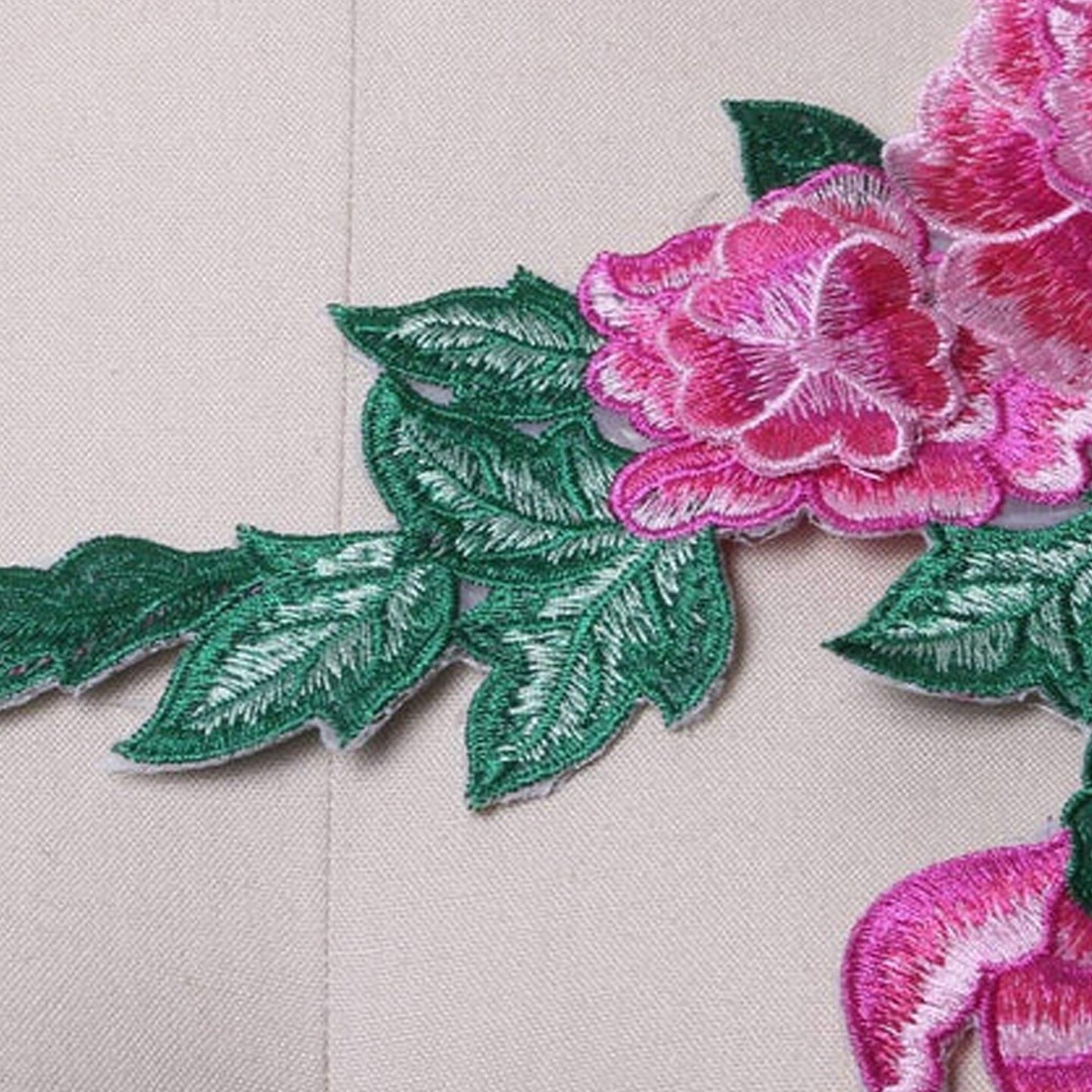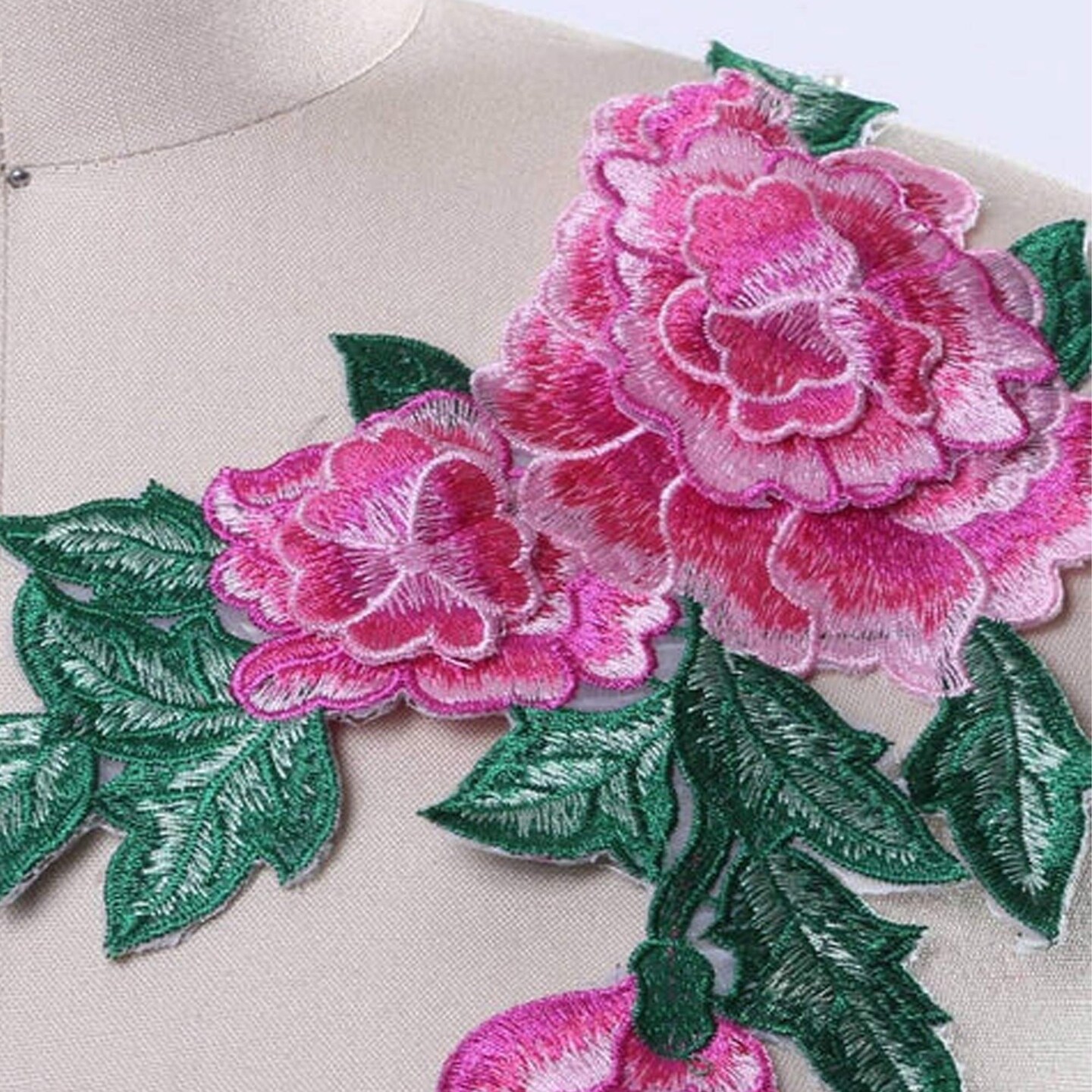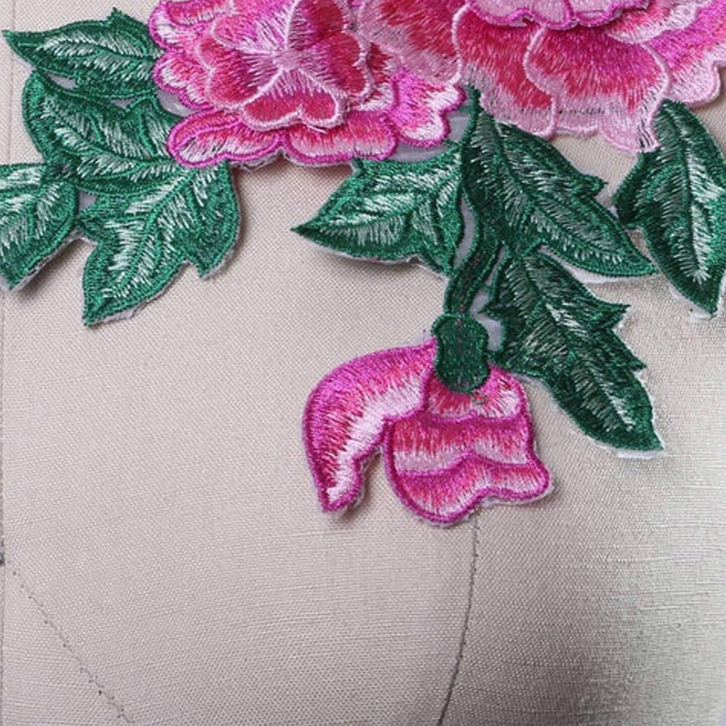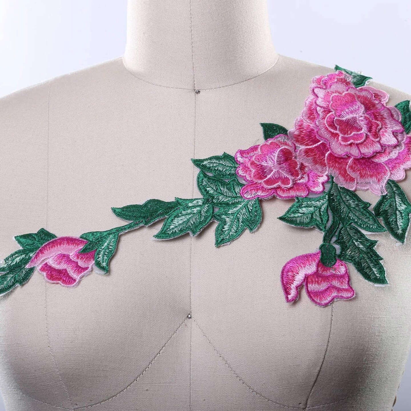 Pink and Green Embroidered 3D Flower Patch Iron On for Dresses and Costumes