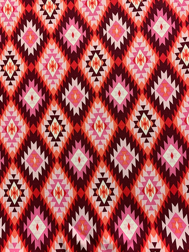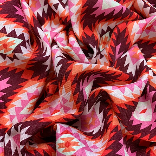 Pink and Red Aztec Print Rayon Challis Fabric By the Yard