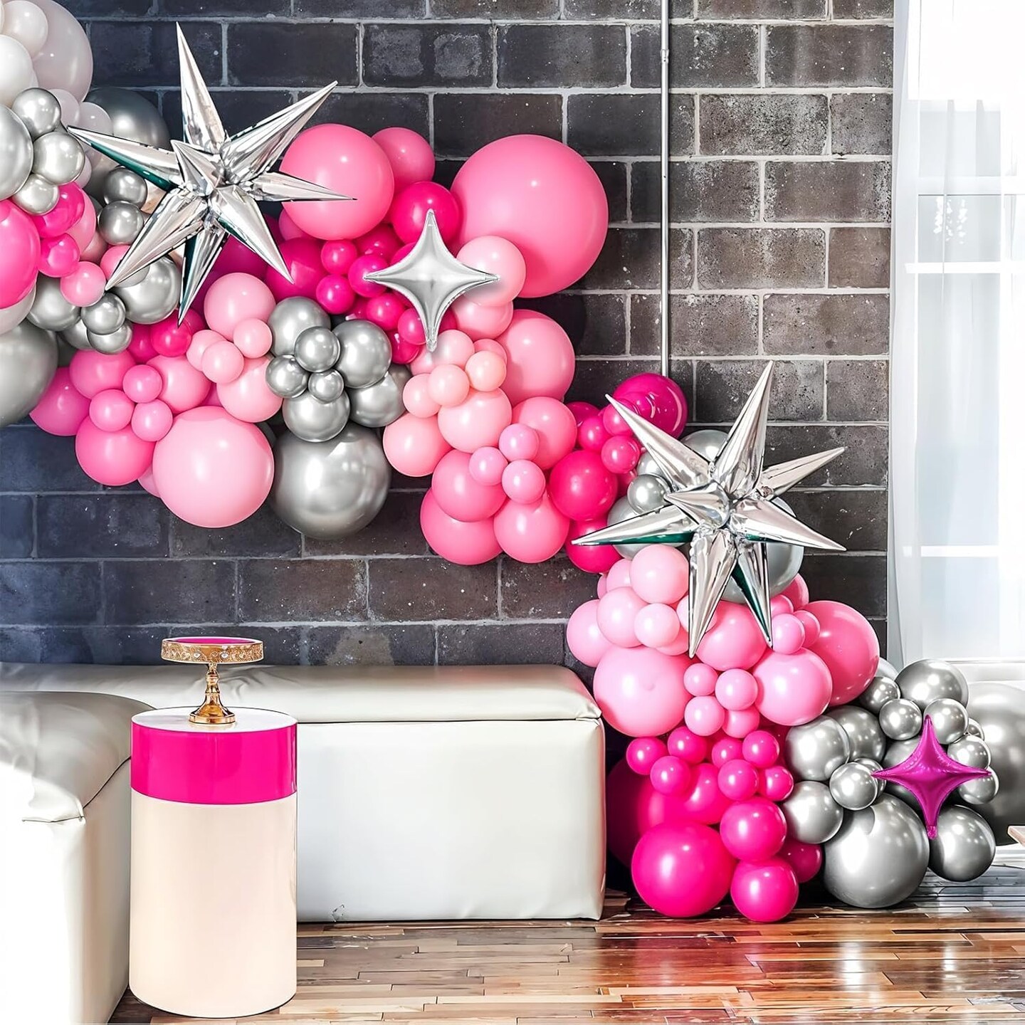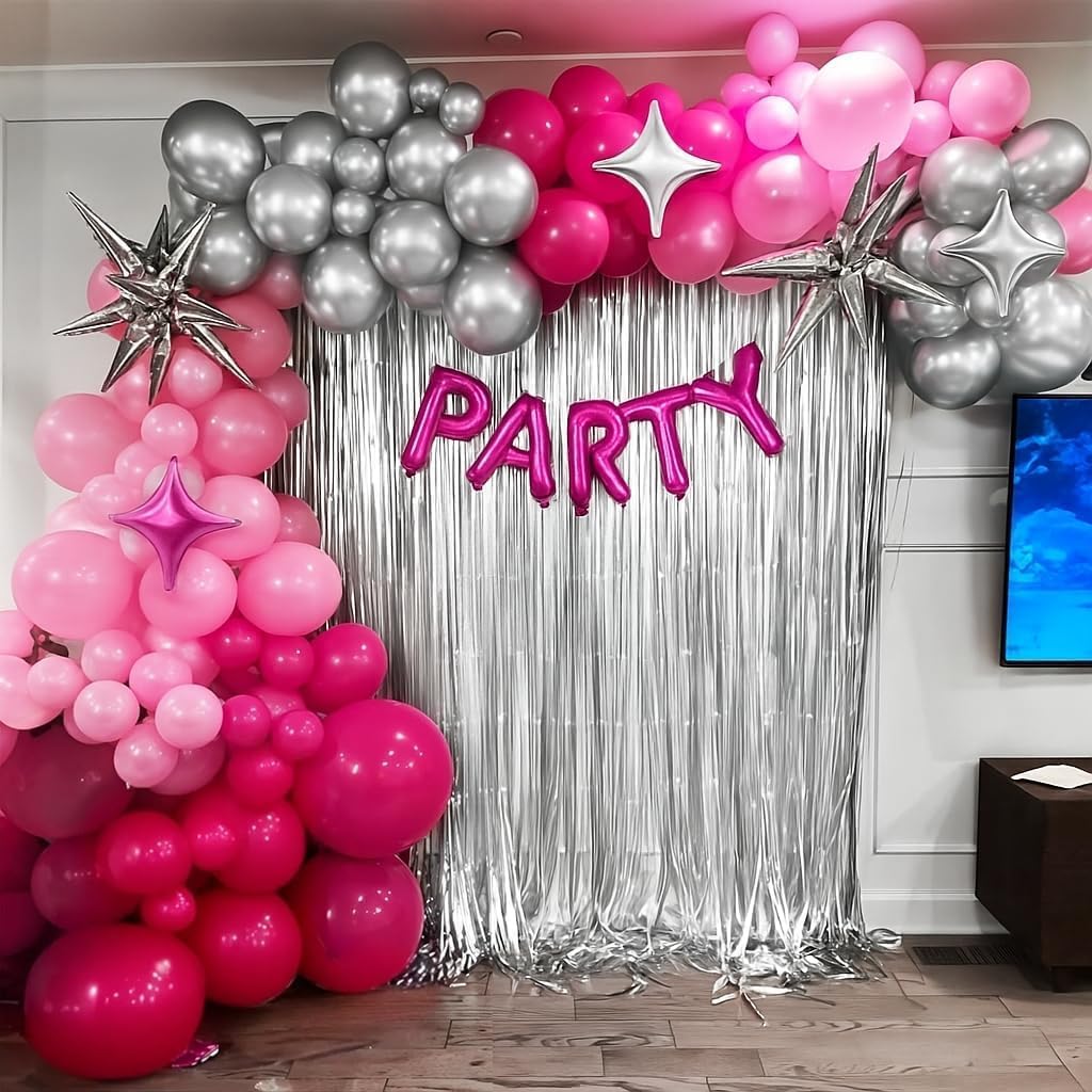 Pink and Silver Balloon Arch Kit ( Rose Red Pink)