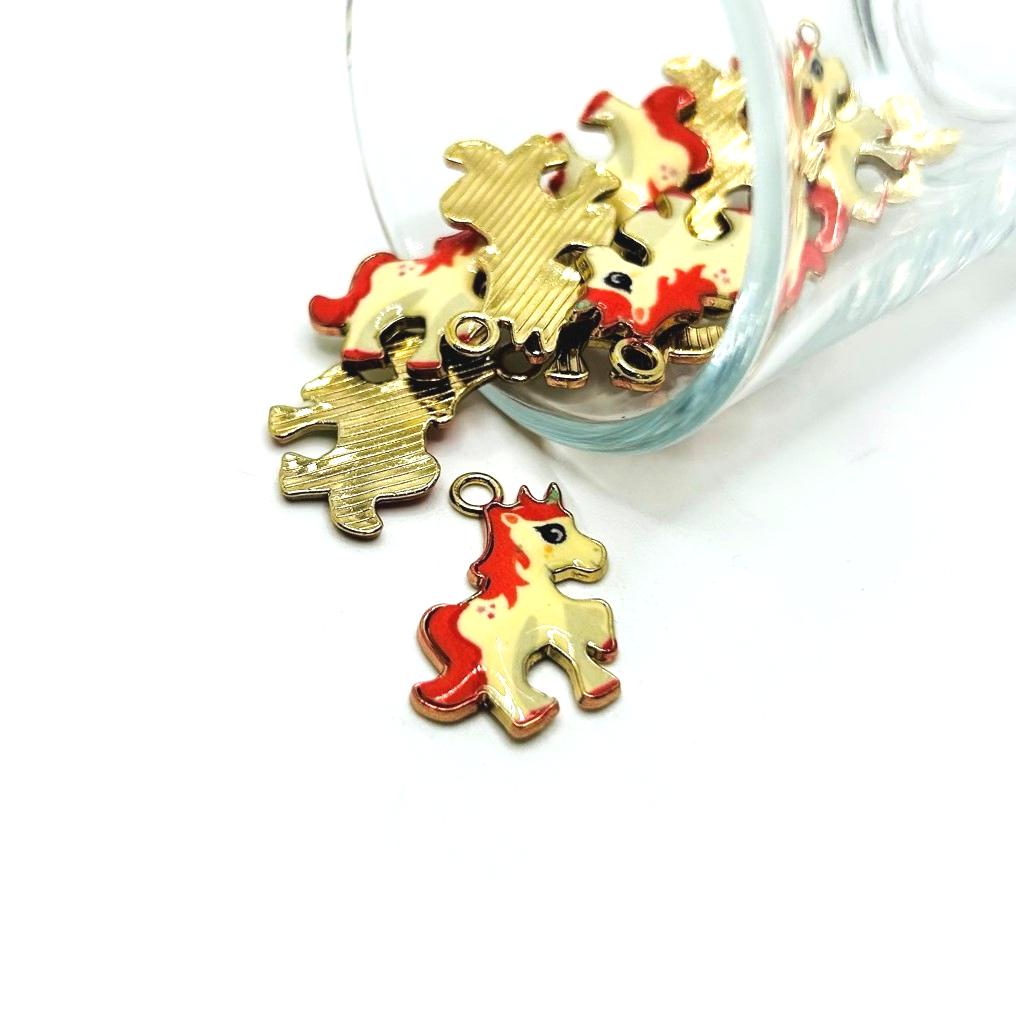 Pink and White Enamel Unicorn Charms, 24x20mm