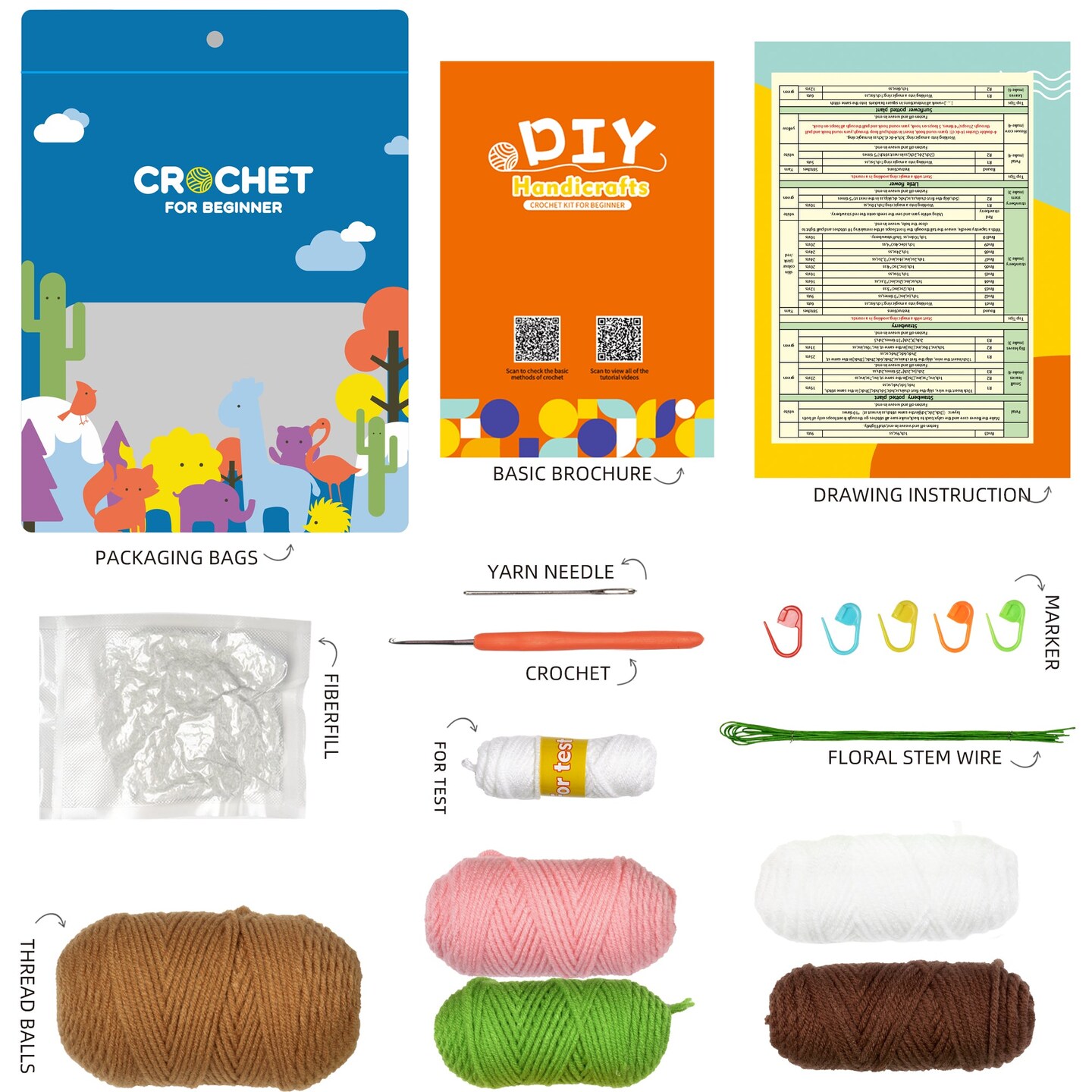 Pink and White Flowers. Potted Flower Amigurumi DIY Crochet Kit Wizardi F07N8-M23