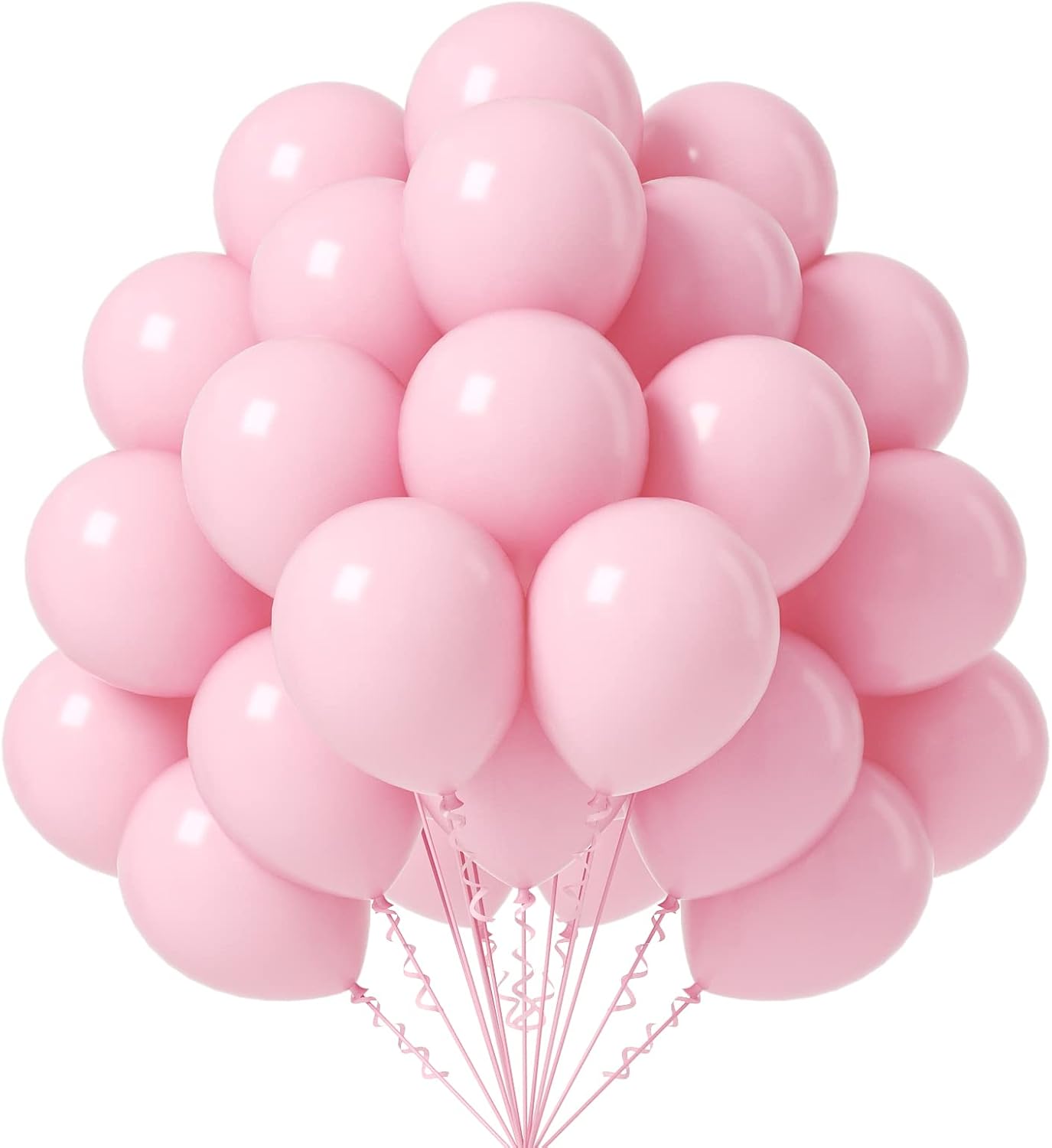 Pink Balloons 12 inch, 50 Pack Light Pink Latex Party Balloons Helium Quality for Birthday Graduation Bridal Baby Shower Gender Reveal Pink Princess Party Decorations (with Pink Ribbon)