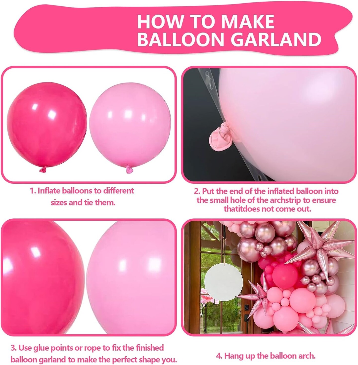 Pink Balloons Arch Kit, 160Pcs Hot Pink Balloon Garland Kit Metallic Rose Gold Confetti Balloons for Birthday, Wedding, Princess Theme, Engagements, Baby Shower, Anniversary Party Decoration