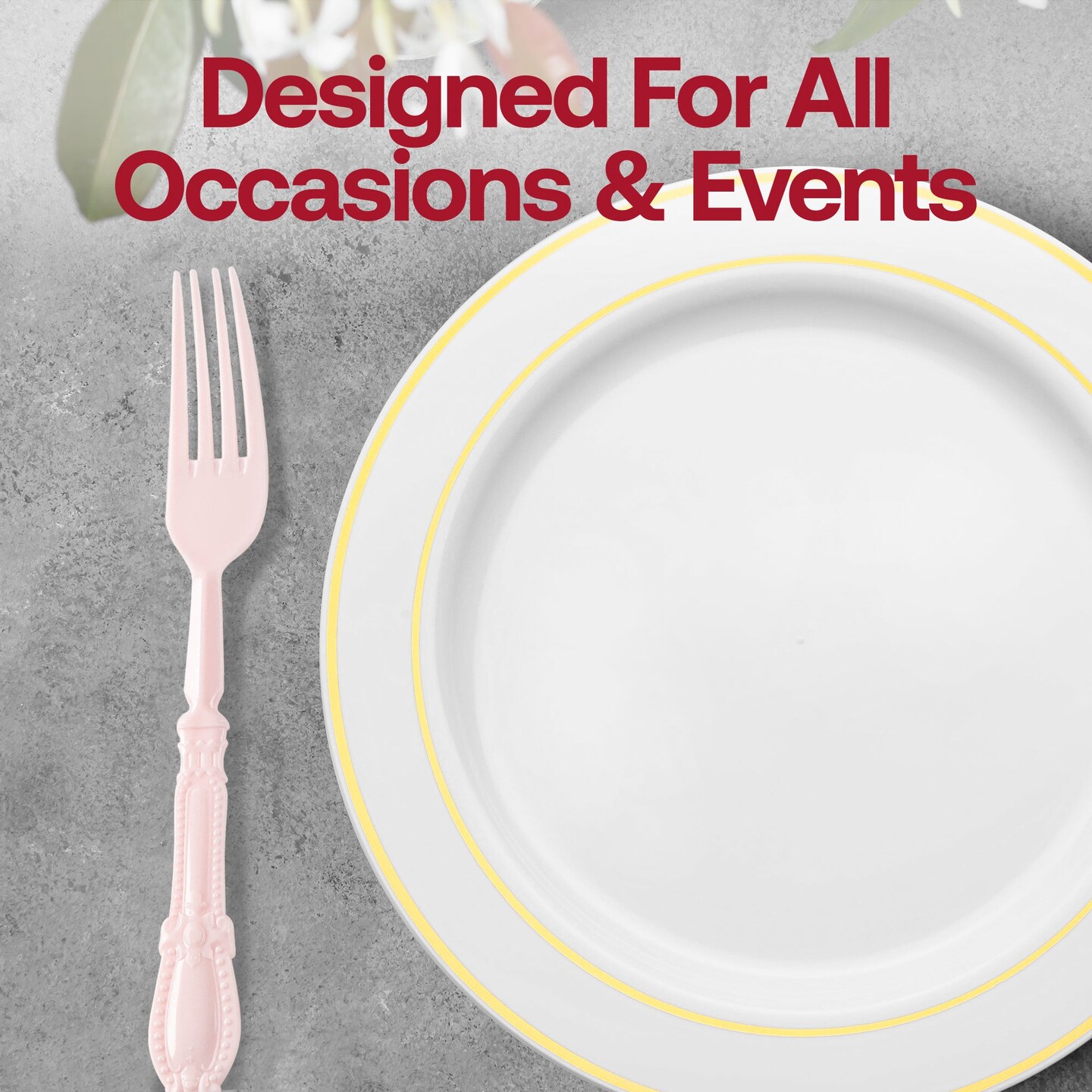 Pink Baroque Disposable Plastic Dinner Forks (480 Forks)