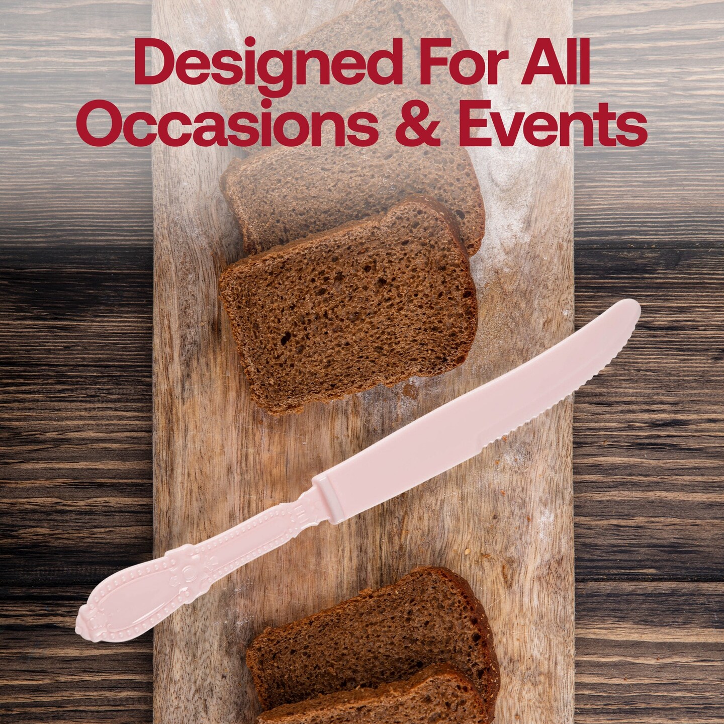 Pink Baroque Disposable Plastic Dinner Knives (480 Knives)
