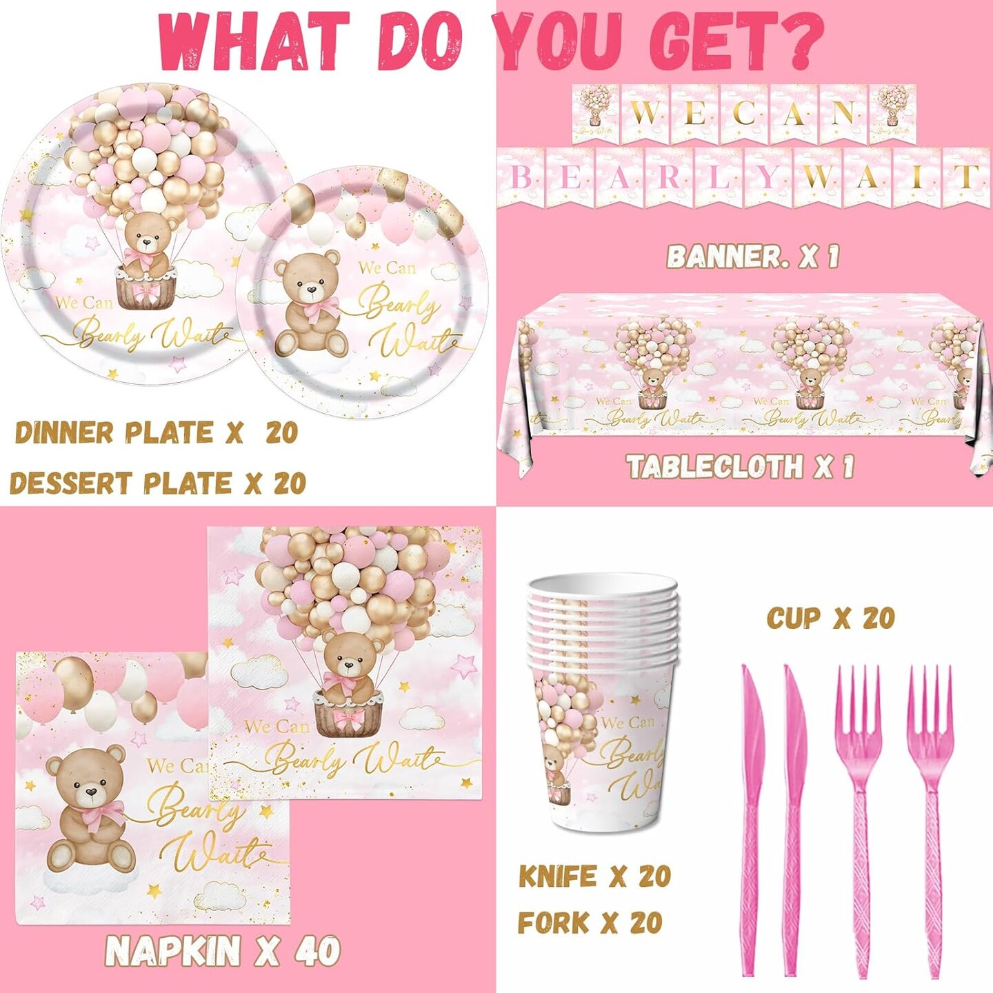 Pink Bear Baby Shower Decorations (Pink)