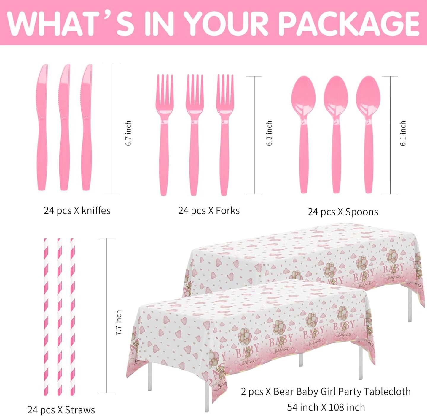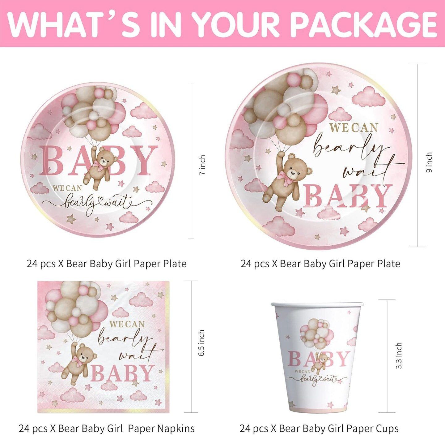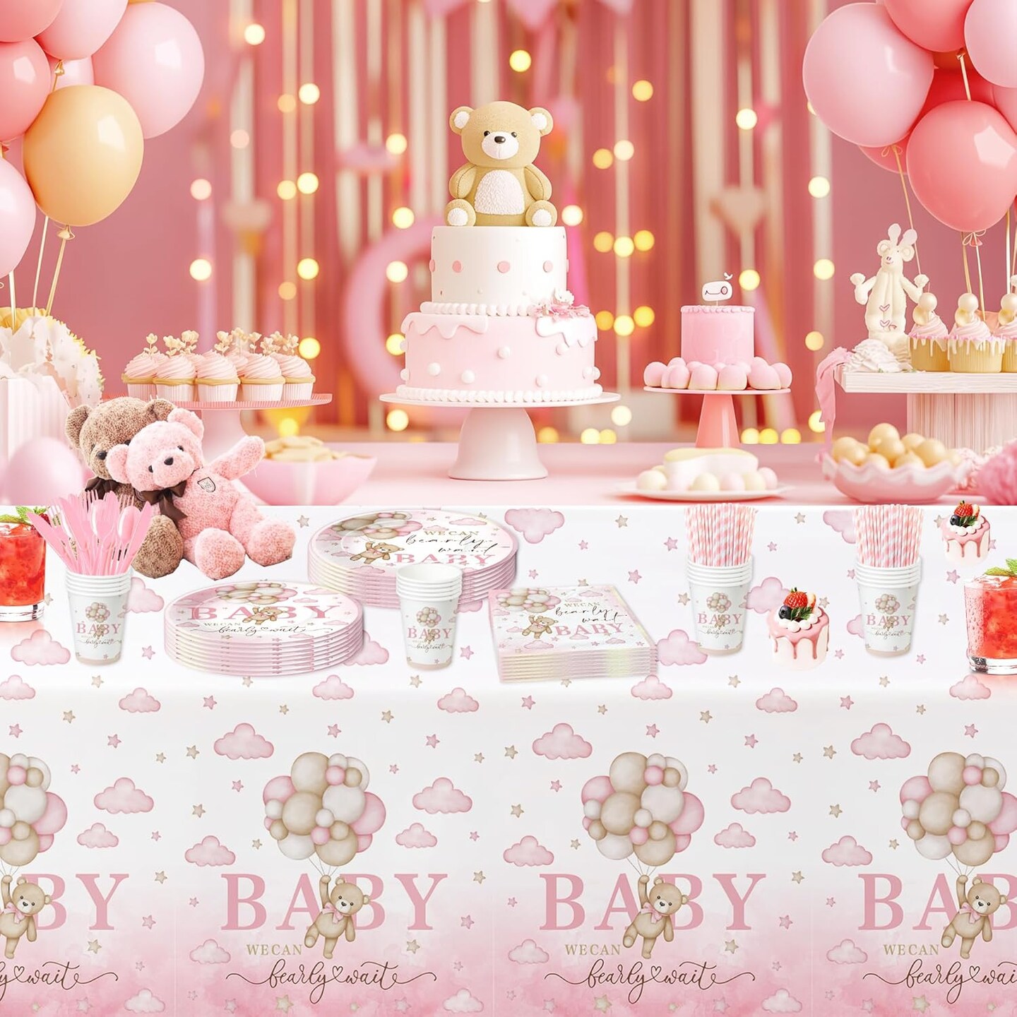 Pink Bear Baby Shower Decorations Tableware Girls (Pink)