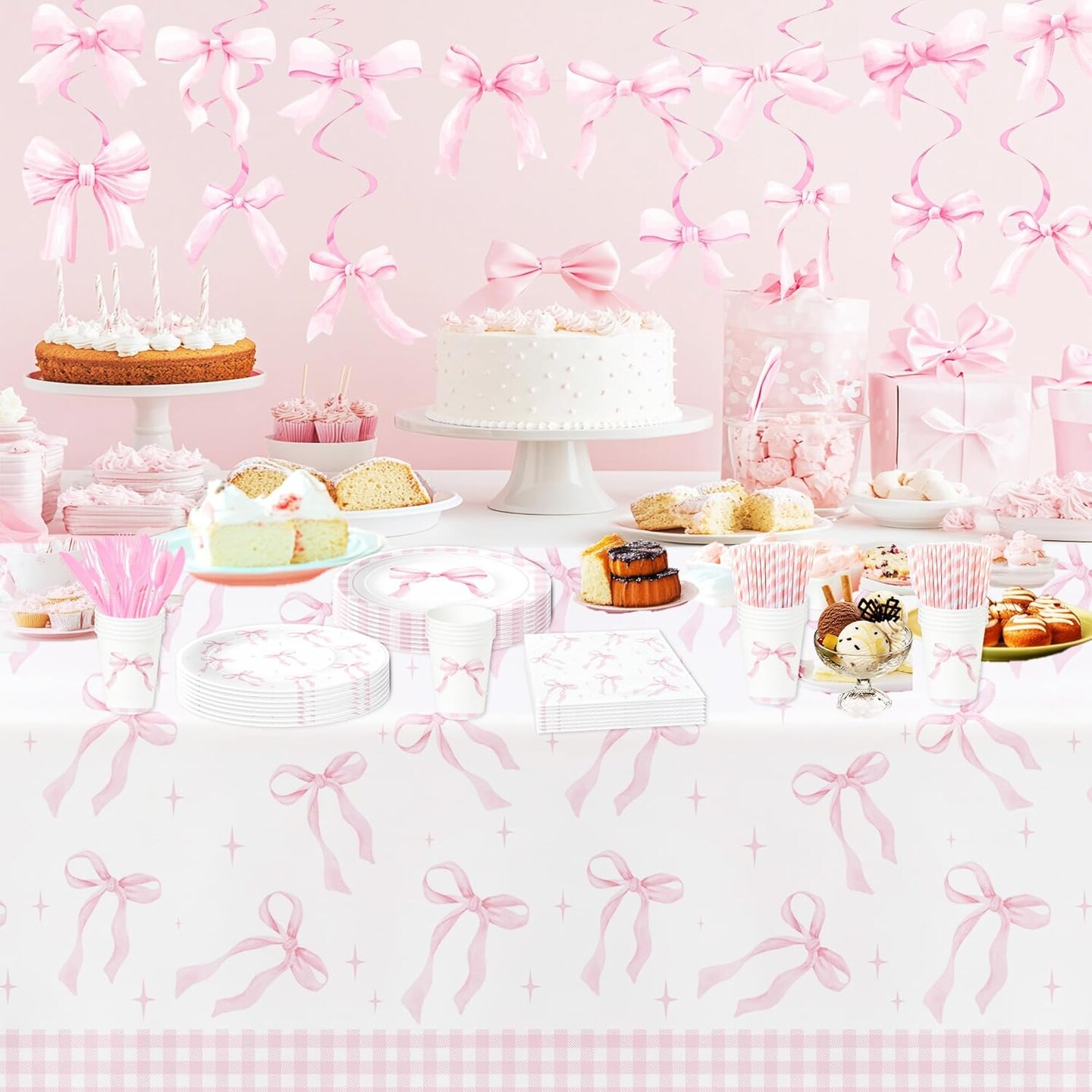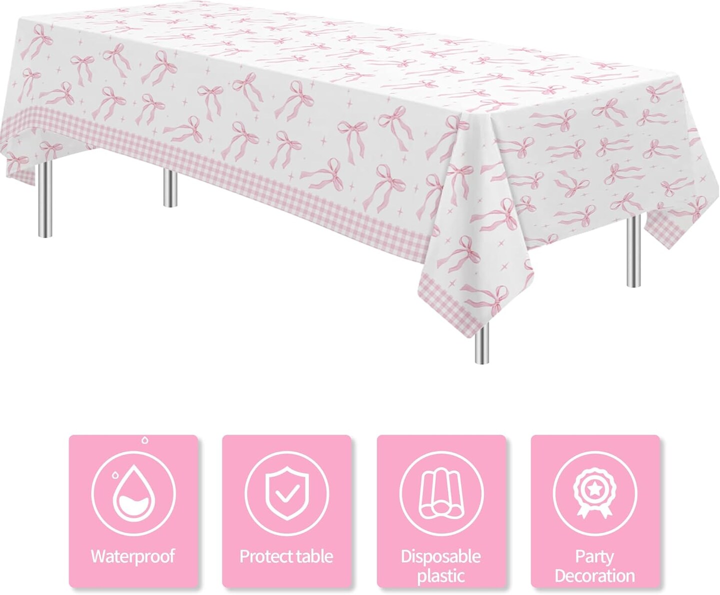 Pink Bow Party Decorations Tablecloth
